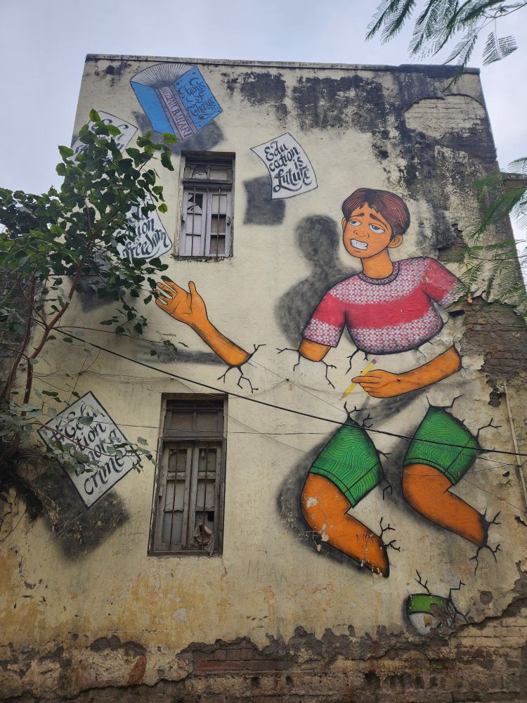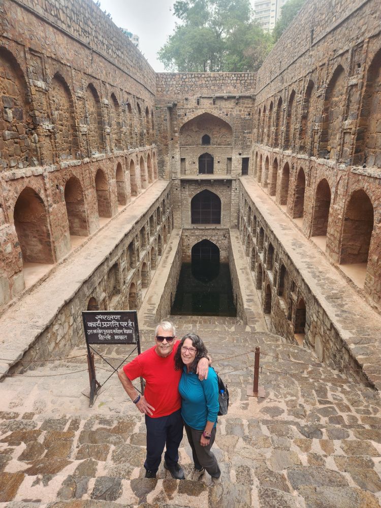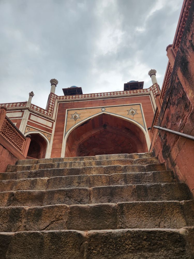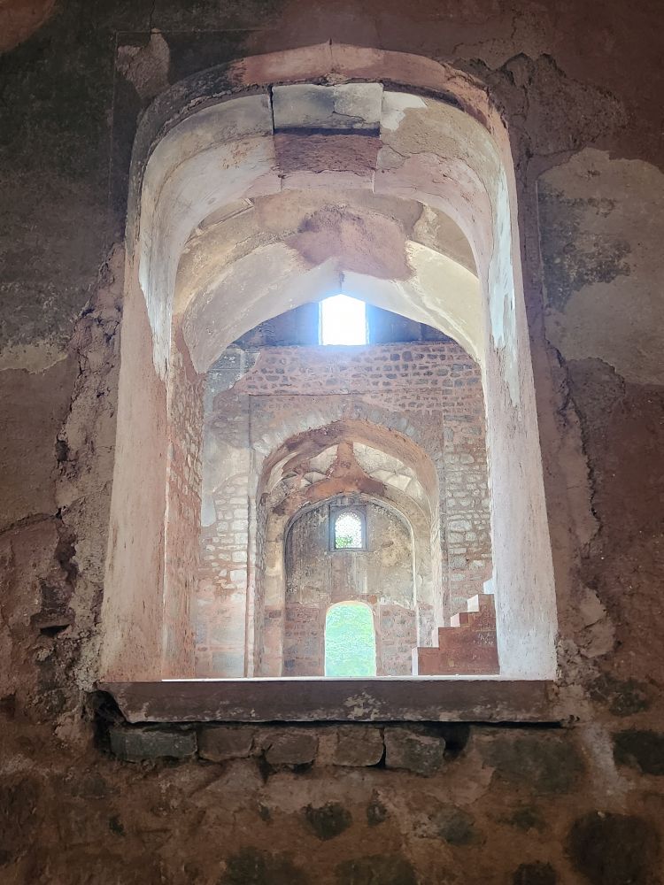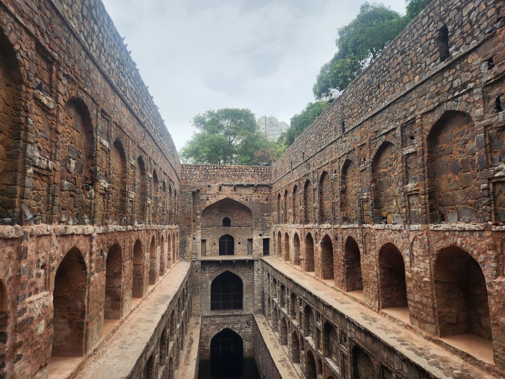 Next, we head to the Ugrasen Ki Baoli, a 200 foot long stepwell hidden down a little alley (that has some great graffiti murals). The stepwell, if we remember correctly, used to be used by royalty or the upper class here, for water and to come and relax in the heat. It has 108 steps and is one of a very few stepwells left in Delhi. VP also tells us it has been used for many film shoots over the years, and is now a popular place to come and take photos (which is evidence by 2 young girls who are posing for selfies in the entrance arches as we are leaving).