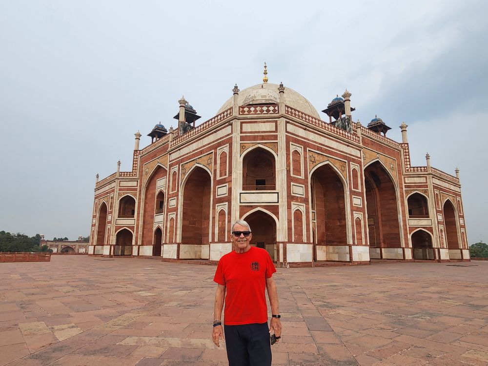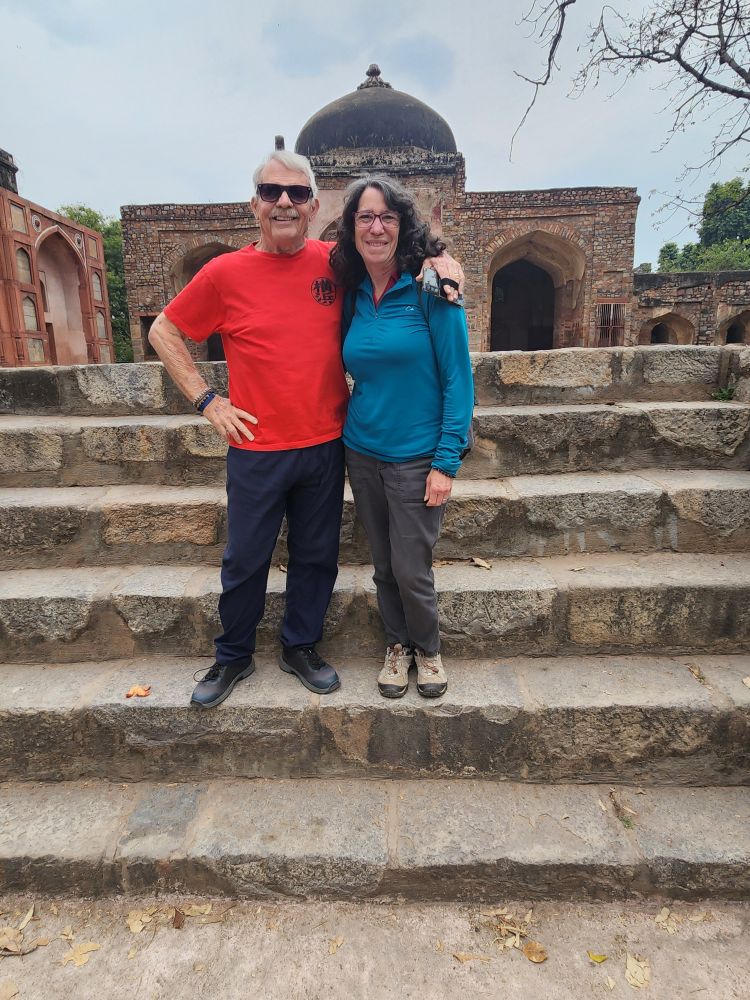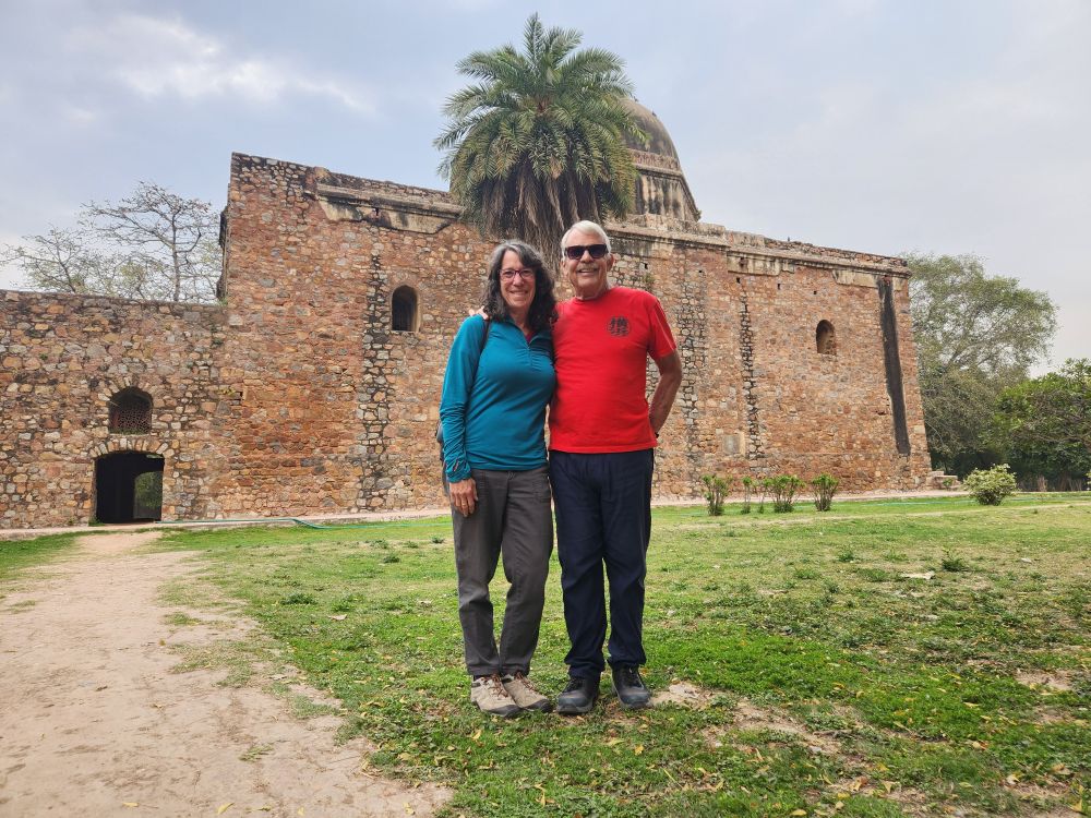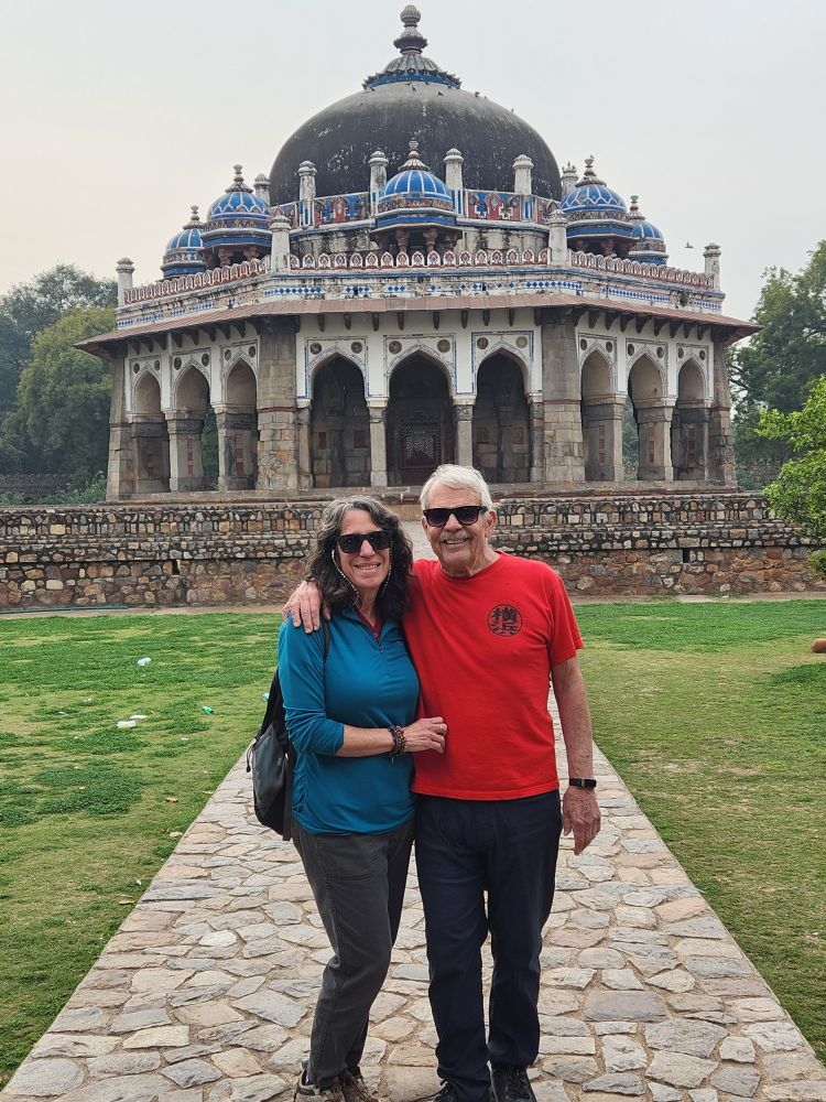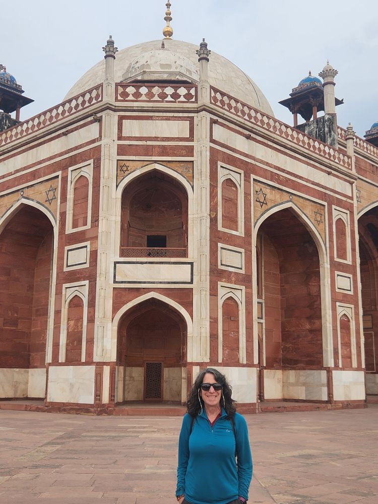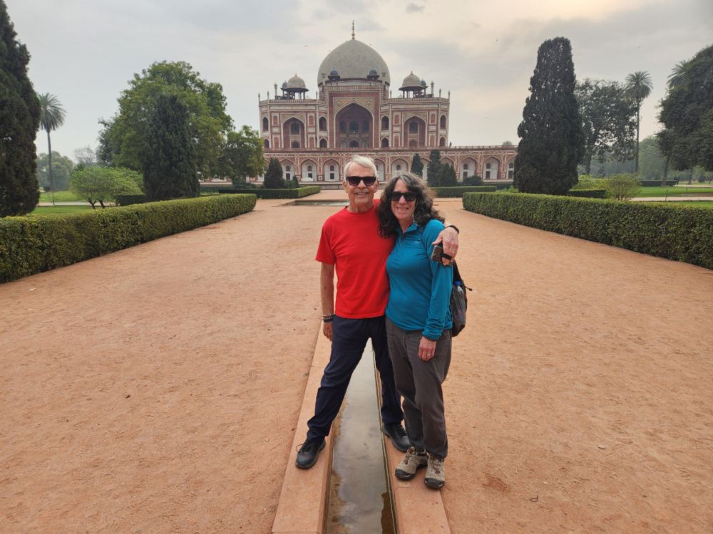 This was supposed to be a full day tour, but we told Amit we only wanted a half day as we want to try to sleep this afternoon in order to work on the jet lag. Negotiating an early departure, we leave a little before 8am and are at our first stop, the Humayun Tomb just after 8. We had visited here before on our trip in 2018, but on our own with Maggi and Richard, so we had no guide to give us the details. Besides that, it is definitely worth visiting again – plus at this time of the morning, we have the huge garden grounds virtually all to ourselves.
