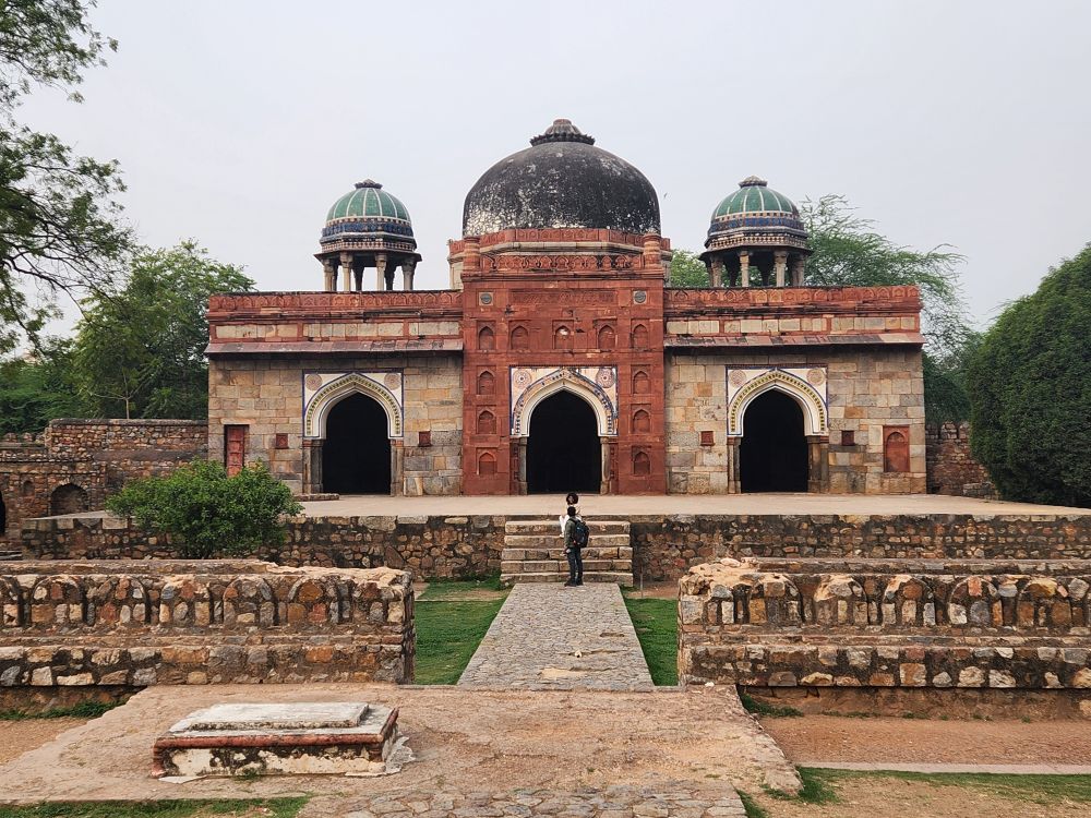 Our last visit inside the Charbagh was Isa Khan’s tomb and mosque. These buildings also predated Humayan’s tomb by about 20 years and is the only surviving octagonal walled mausoleum left intact with walls, mosque and gates. We first wander around the tomb, viewing all the centographs inside, then head over the mosque, where we can’t enter, but still have the opportunity for some great exterior photos.