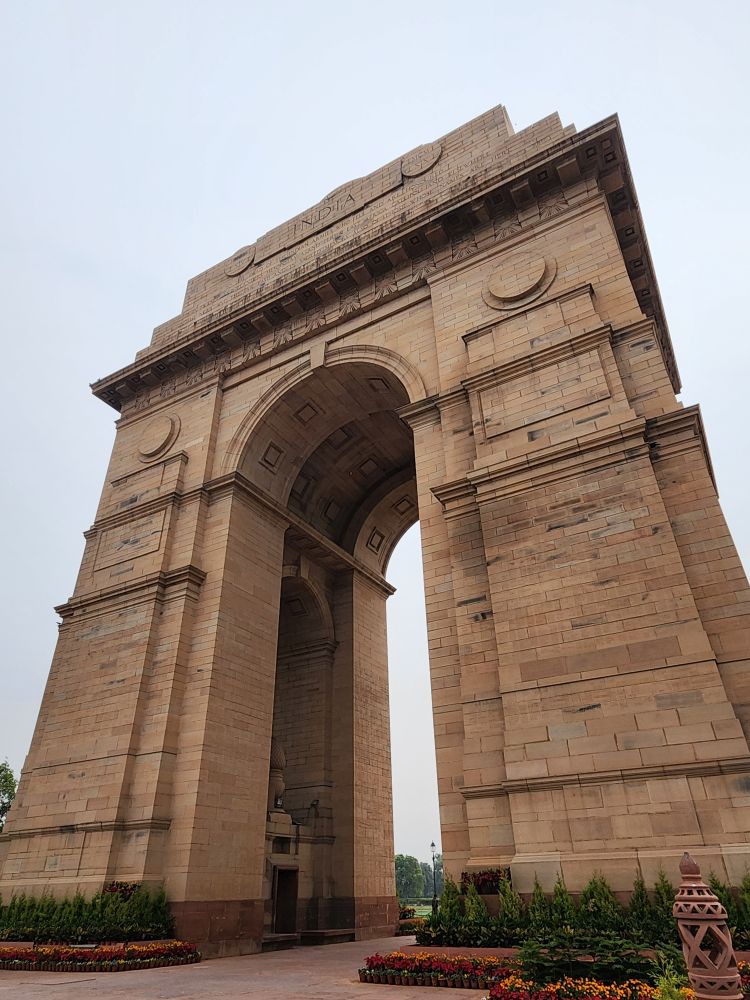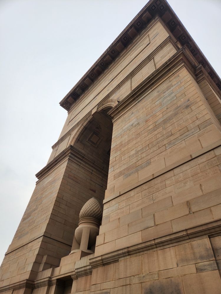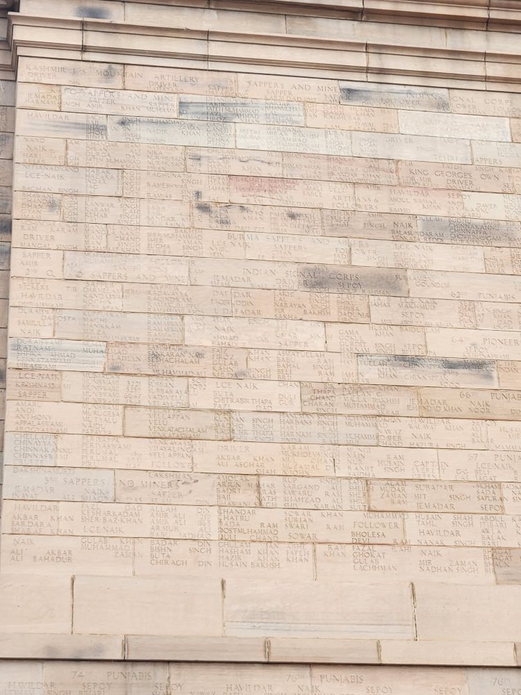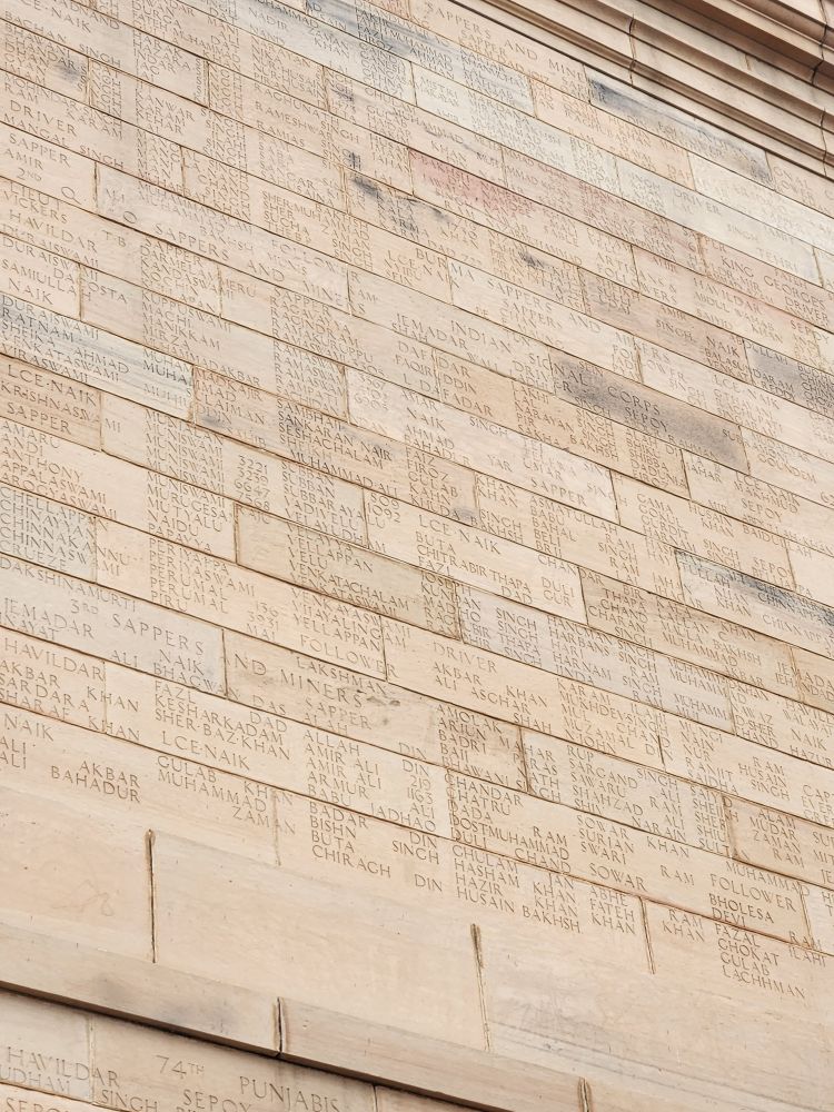 We finally made it here – we’re so excited. In 2019, we were here on Republic Day, one of the biggest holidays of the year and all the streets around the Gate were closed down for parades and celebrations. We couldn’t get near the place – we were barely able to snap pictures from the bus – and you really couldn’t see the gate at all, just the people in the streets. Today? A totally different story. We park and walk through the underground tunnel to the Monument, a memorial dedicated to the more 74,000 soldiers of the Indian Army who died during the first World War. There is hardly anyone around as VP plays photographer, then walks us around the war memorial, pointing out some of the 13,300 names inscribed on the walls.