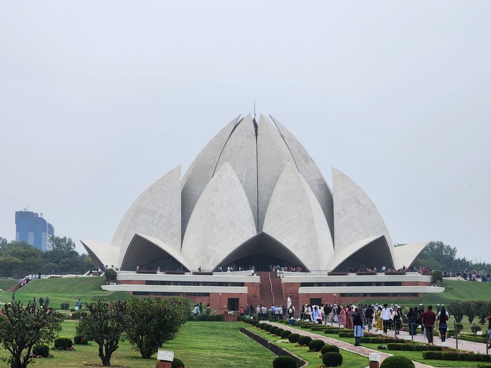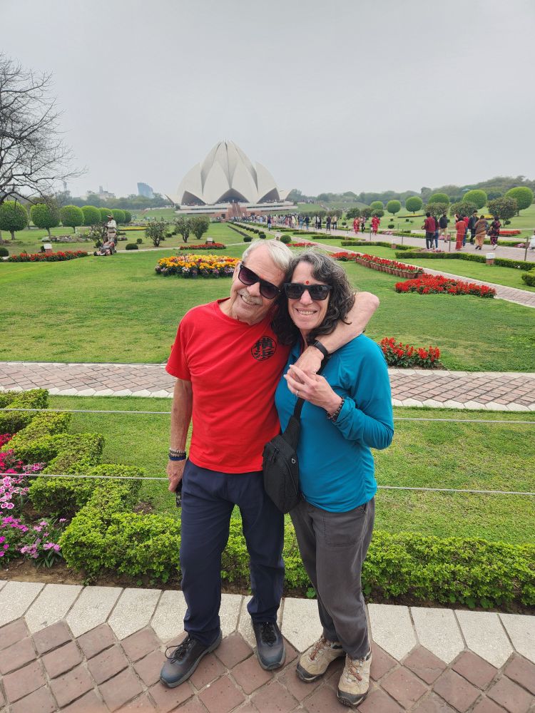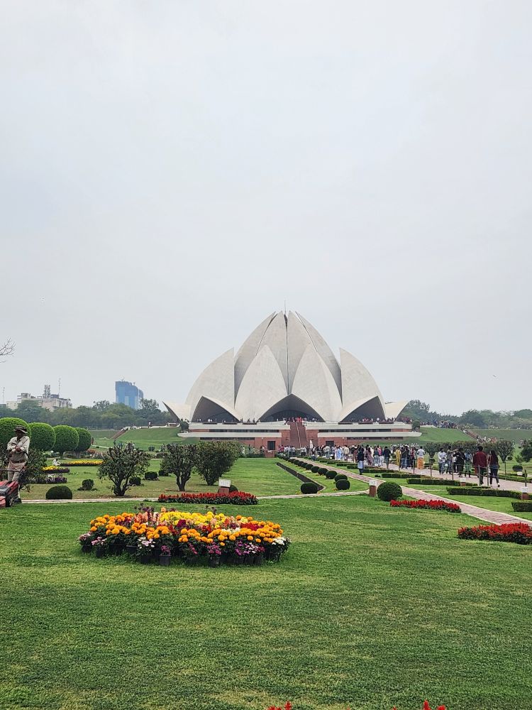 Our last stop of the day is the Lotus Temple – a gorgeous Baha’I Faith temple, that is open and welcome to everyone. The gardens are beautiful with the temple in the shape of a giant lotus in the background. We have some debate about whether to go inside the temple, but there are literally thousands of people streaming toward the sanctuary, and VP tells us there is nothing inside, just benches for worship. As it is getting late, almost noon and we really want to get back to the skanky hotel to sleep a bit before our flight, we politely decline walking all the way out to the temple to see nothing. We are happy with the photos we can take from here, and of course VP is always around to act as our personal photographer.
