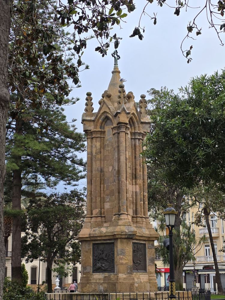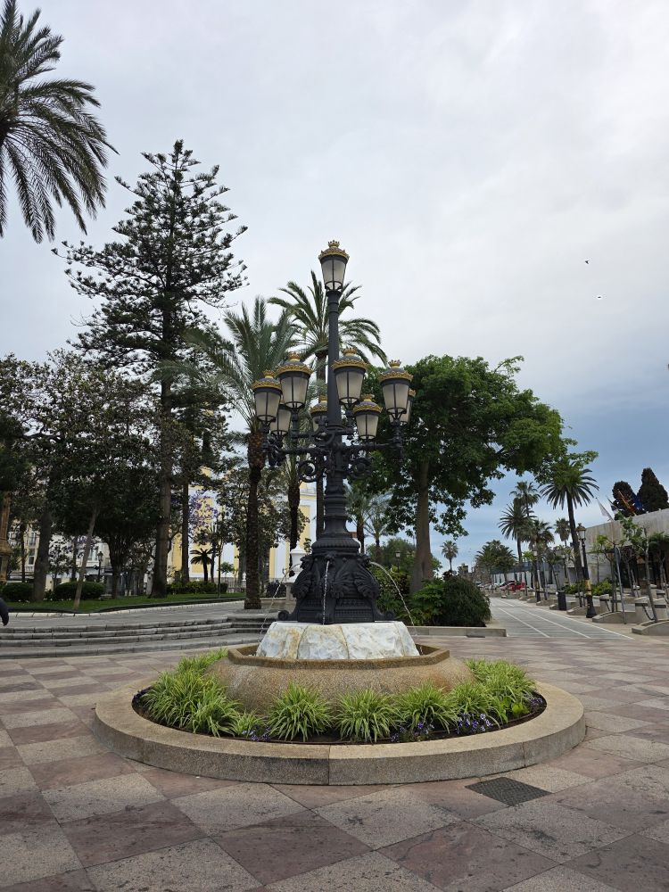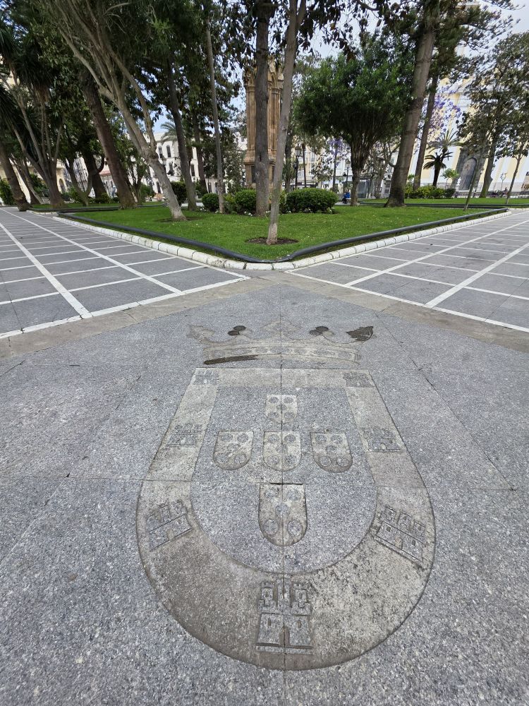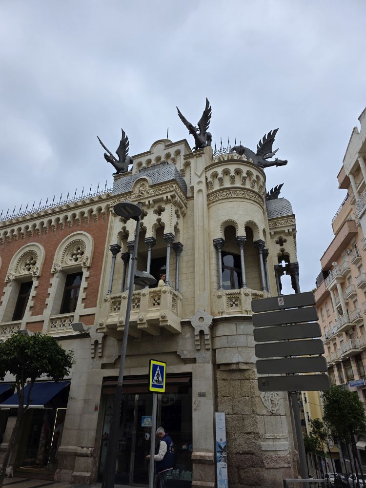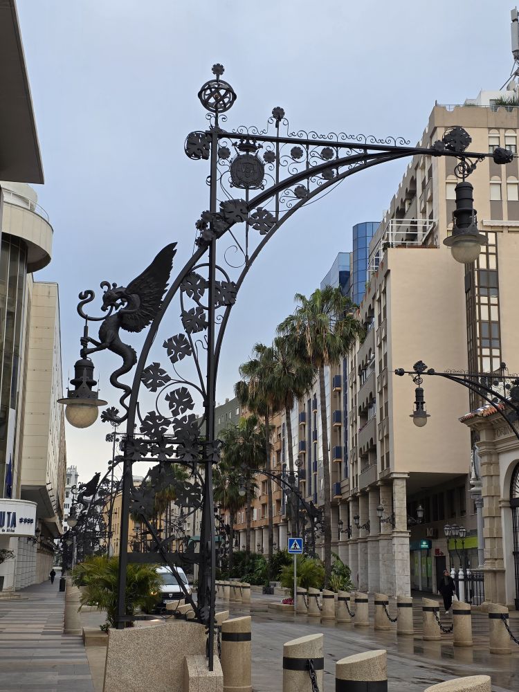 Following Paseo Alcalde Sanchez Prados, one of the main street running through the city, we marvel at the dragon embellished street lamps that line the street. Dragons are a symbol of the city, for over 100 years, when the Cerni brothers (one of whom was the Mayor of Ceuta) commissioned dragon sculptures to embellish the roof of their building, located in the Plaza de los Reyes. Dragons symbolize strength and protection, emblematic of the city’s history and resilience. We are looking for the Casa de los Dragones as well – but didn’t find it on this pass of the town – it’s on our map, so we’ll see it on our return trip through town on our way to the ship, we hope.