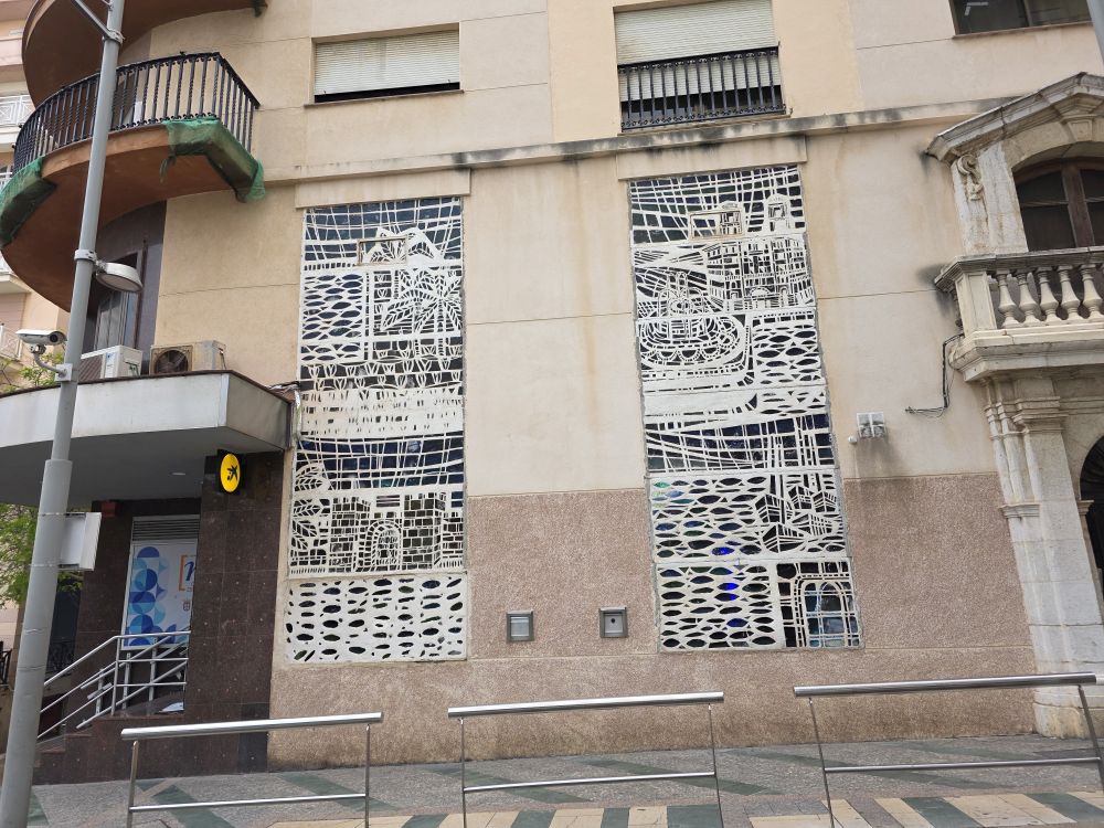 Continuing our stroll through town, on our way to the hike around Monte Hacho, passing Iglesia De San Francisco with the wild Monumento a la Semana Santa, a bronze sculpture for Holy Week in Ceuta, neat tile panels on the side of a random building, more churches, and finally beginning our climb up and around Monte Hacho, some wonderful views of typical Spanish/Moorish wall carvings and flowers.