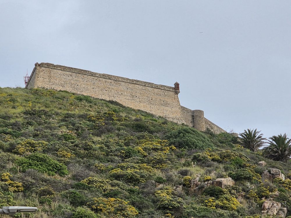 Anyhow, we continue on our trek, with Monte Hacho Fort (which has been a barracks, prison, concentration camp, and finally again an artillery barracks) looming over us almost the entire way. Passing outcrops of cactus and flowers growing out of the stark rock cliffs, outlooks overlooking the Desnaringado Castle, where a Barbar pirate hid when his nose was amputated while he was imprisoned in the Rif Mines, more cactus and just stunning views, waving at the cruise ship shore excursions buses as they pass us by – 2 hours of just riding around in a circle to “see the best” of Ceuta. No thanks. We’re seeing the best here on our own!