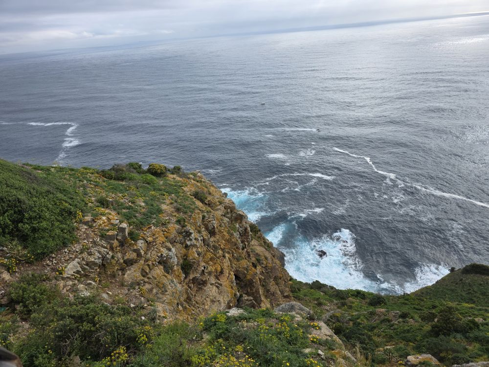 We finally reach the apex of our hike, resting for a moment at an “official” outlook, the Mirador de Punta Almina, we can see back toward Desnaringado as well as the Punta Almina lighthouse, first lit in 1855, rebuilt in 1919 and still use today. Plus, of course, more incredible coastal views.