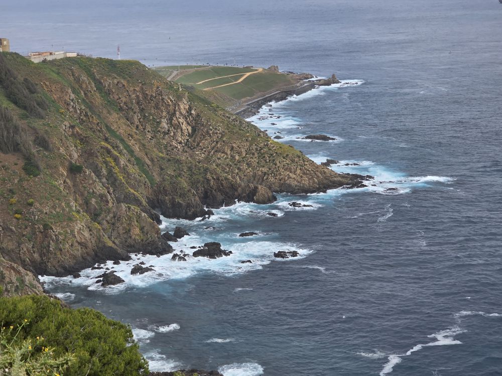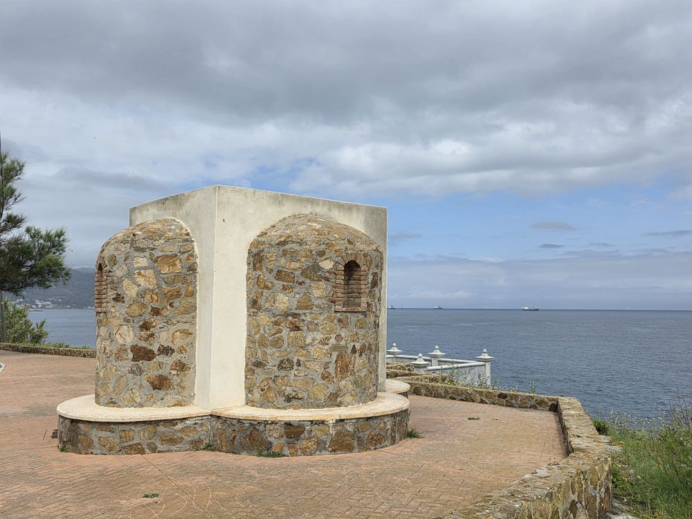 On our way, we pass by Monolito Llano Amarillo, or Monolith of the Yellow Plain, that commemorates the Military Uprising of July 17, 1936, when Moroccan generals finalized the details of an uprising against the Spanish Republic right before the Spanish Civil War. The art deco-ish Monolith was inaugurated in 1940 in Llano Amarillo (Morocco), then moved to its current location in Ceuta in 1962. Then continue on along the coast with those fabulous rocky views.