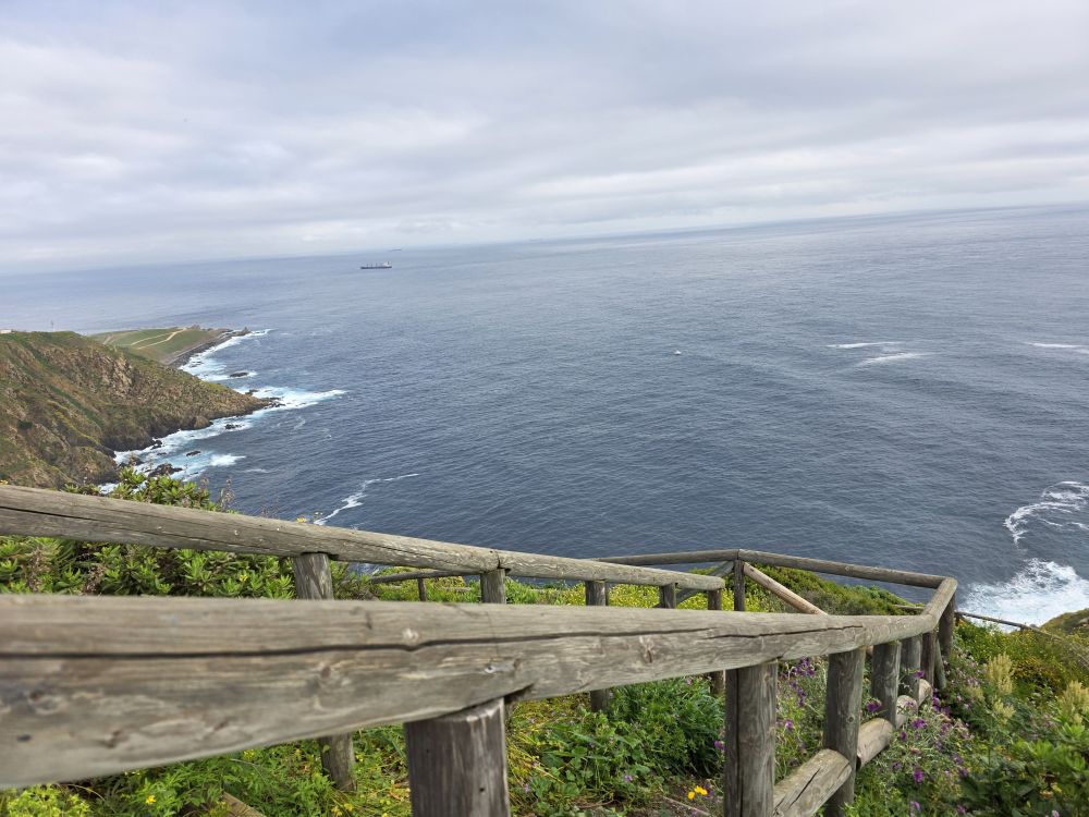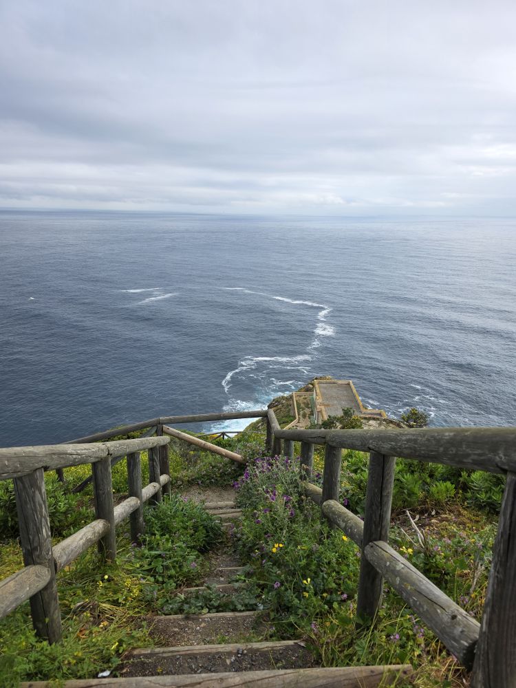 Further on, we pass the Baterie de Punta Almina, with those steep wooden stairs leading down to the viewpoint. We’ll pass, thanks.