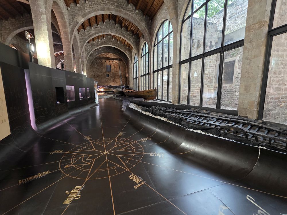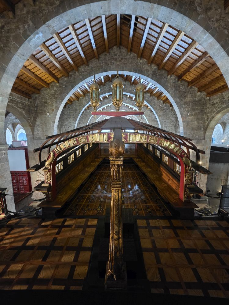 The next section, the Shipyards and Galleys, revolves both around the history of the Drassanes Shipyard (the Royal Shipyards building we are standing in today) and a massive, true to life scale Royal Galley. The building history in and of itself is interesting, built and operated first as a Military Barracks in the1600s, it was converted to the Royal Cannon Foundry in 1745 and continued to be used by the military until 1927. In 1935, the army gave it to the city and in 1936, just after the beginning of the Spanish Civil War, the Catalonia Maritime Museum was created. Unfortunately, due to the war, the museum couldn’t open to the public until 1941, when it was renamed the Barcelona Maritime Museum, occupying a small part of the entire Royal Shipyard site. Sometime in the 1970’s, the city proposed a plan to demolish the Drassanes in order to build homes. The site was saved due to an immense public outcry, and in 1976 the buildings were listed as a historical-artistic monument. Restorations and excavations for an expansion of the Maritime museum began in 2010, producing this fantastically restored building we are visiting today.