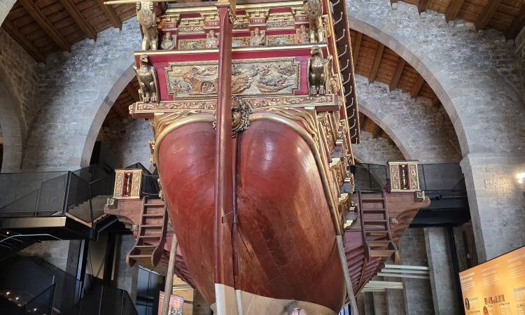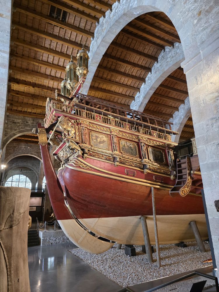 If that isn’t interesting enough, the Royal Galley is just astonishing. Originally built here in the shipyards, on the beach, this reproduction faithfully recreates the beautiful 16th C ship. It measures 60 meters long, weighs over 200 tons, includes its huge 59 oars and the gold leaf Neptune at the prow of the ship. The carvings and artwork adorning the ship are wild – we know it was traditional to build like this, but why? All that beauty is just going to rot in the sea water and salt-ladened air. Whatever the crazy reasons they had for decorating ships this, way, it does make for a gorgeous and opulent piece of craftsmanship.