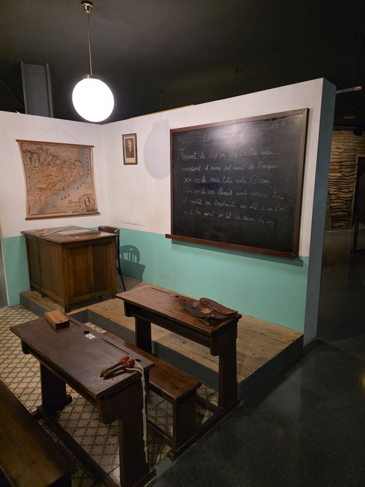 The last floor we visit is a temporary exhibit called En Fugida, or Refugees. A really bold and intriguing look at the current refugee crisis – and how it has really been going on for decades, if not centuries, but it has been politicized and become so much worse today. We definitely won’t bore you with all those details – we downloaded the English guide to the exhibits which is pages long – and will read it all later. Suffice it to say, it’s a problem here, and as far as we can tell, it is very different from the problem in North America.