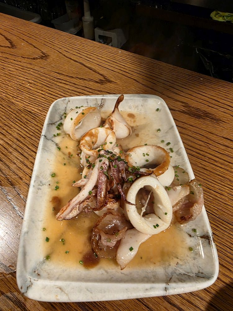 Perusing the menu, which we had already done, we knew what we wanted, but then they had a special seafood menu which looked good so we eneded up with 2 excellent croquetas de Jamon, Butifarra e Ceps Canelones and Calamares de dia, plus of course our beer and wine. An excellent rather light snack for our lunch. As we ate, the teeny place kept filling up with more and more Asians. It’s crazy over here for some reason. By the time we were done and left, there wasn’t a seat in the house, and we’d say over half of the seats filled were Asian.