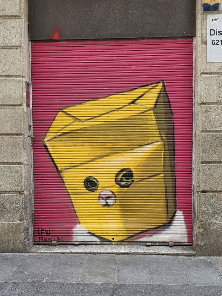 Crossing over Las Ramblas, we headed into the Universidad area, passing by the sadly closed Kiosko – they don’t open until 2:30, so no drink for us there today – as well as some other really cute street art, until we reached Lidl. At this point, I’m just like those Asians – might as well live here, I know exactly where we’re going without the need of the phone maps!