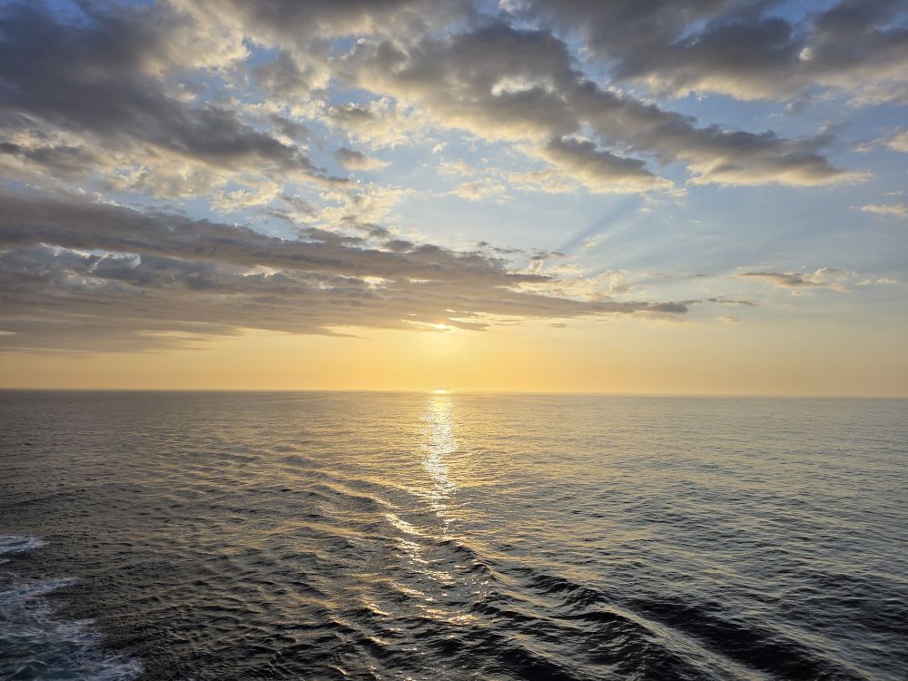 Afternoon is the norm, gym, lounge, drinks on the balcony. But it’s dressy night. Sigh. So instead of the dining room insanity, we eat upstairs in the buffet where we can pick and choose what we want and not have to bother with the long lines and even longer wait times in the main dining room.