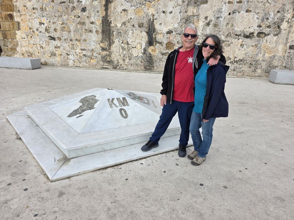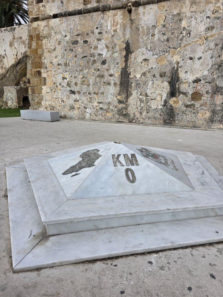 Off we go on a whirlwind speed tour of Tangier. First stop, the 0 KM point, the point where Africa starts for Europeans – and the starting point of all roads in Morocco. It stands in front of the walls of the Borj Dar el-Baroud old city.