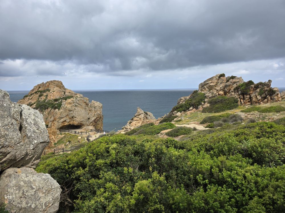 Backtracking, we hit Cap Spartel for some great photos of us and the Med/Atlantic meeting point sign, then take a little stroll down the path that leads to cave area. It is all so pretty and wild and lush. We can’t resist taking way too many photos…just like Hamid!