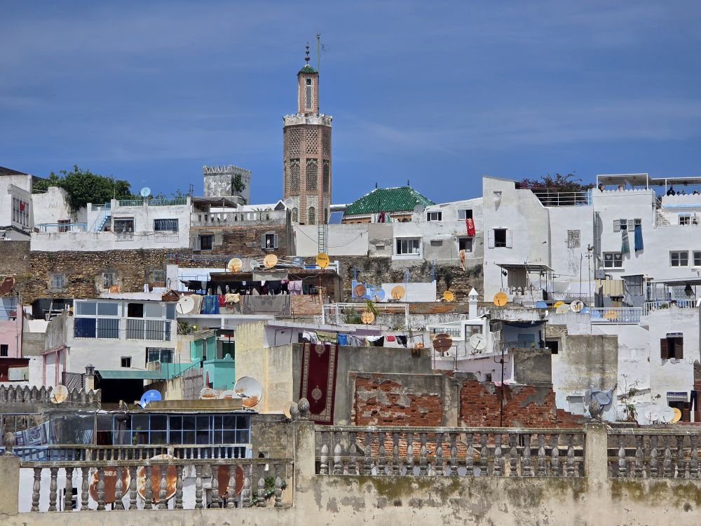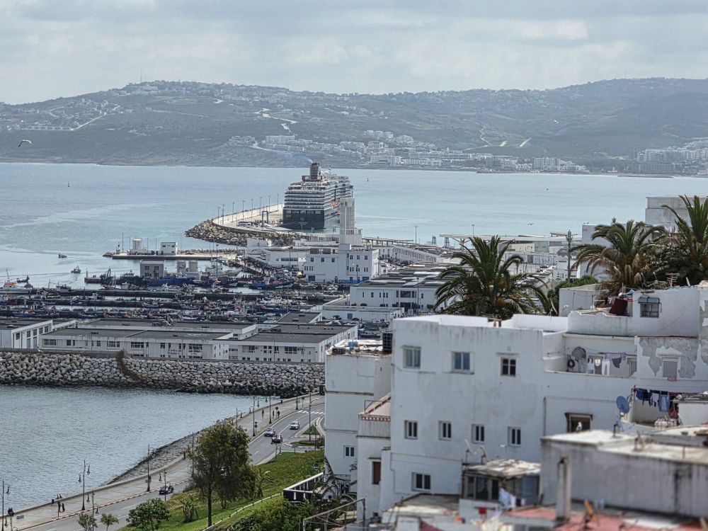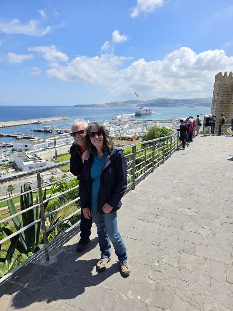 We have a very relaxed morning today as we have booked a half day tour of Tangier that begins at 9am. Oh, joy, sleep in. NOT. Of course not, we don’t even need the alarm to get up at 6am, and we turned the clocks back last night, so it is even easier to be up early. So, normal morning of coffee, gym, then Pinnacle for breakfast. Afterward we hang about on the balcony watching ships out at sea (the sailboat looks like a ghost ship, only because it is so far out there, it’s the zoom on the camera which is awesome).
