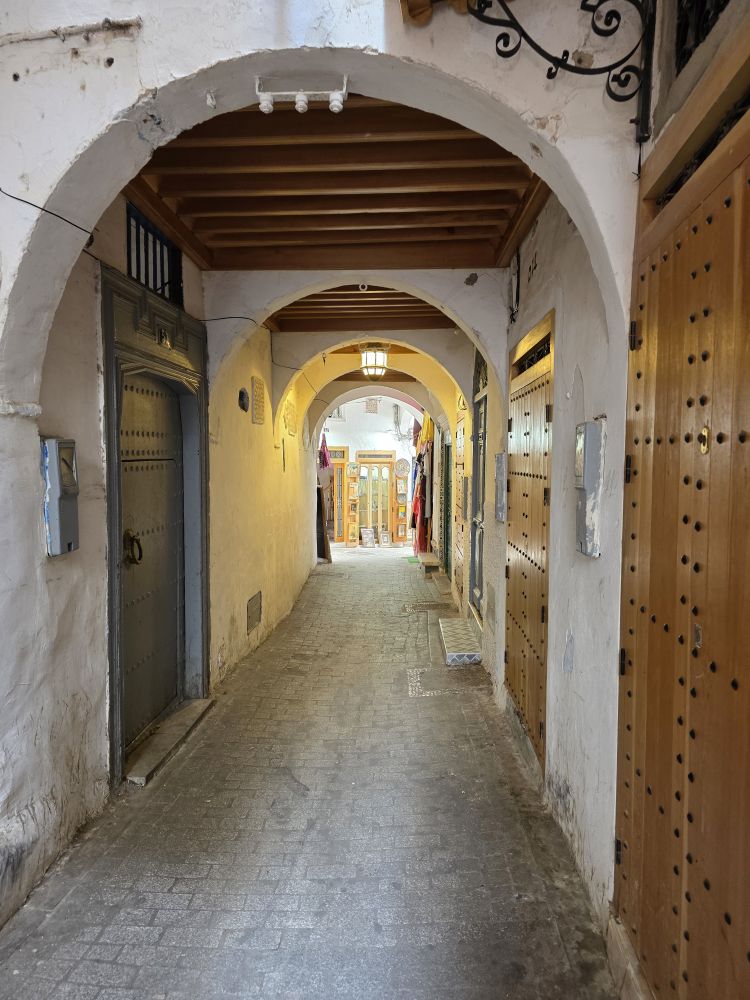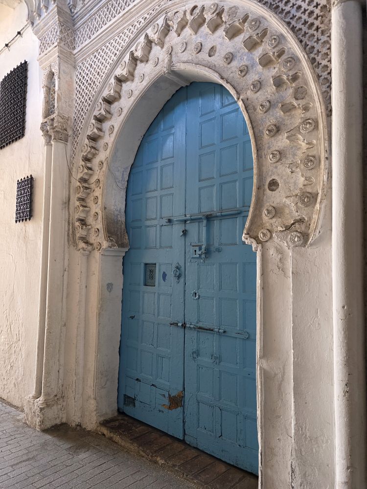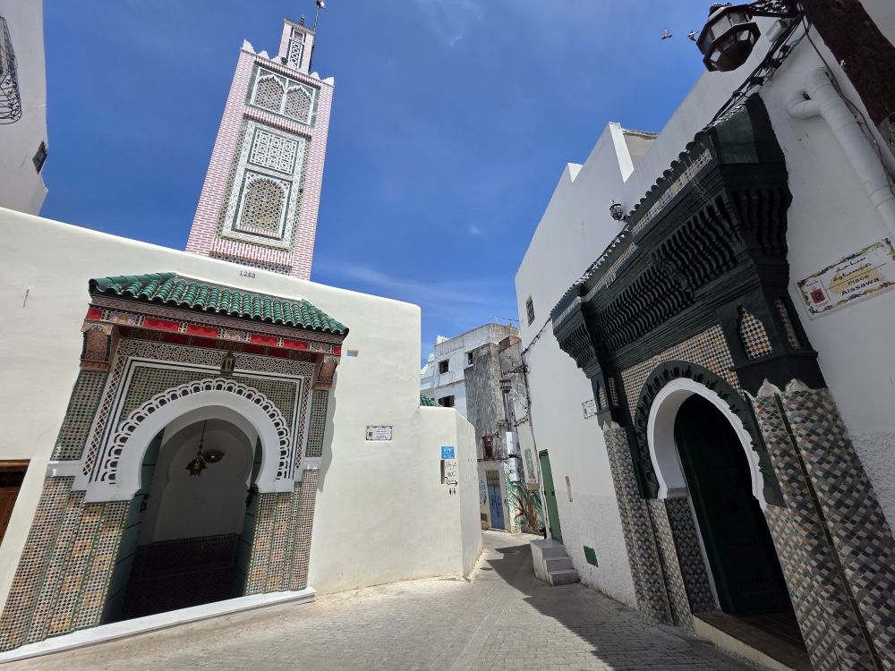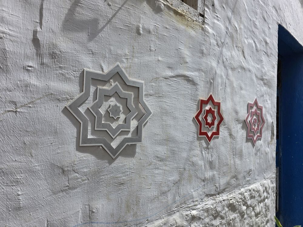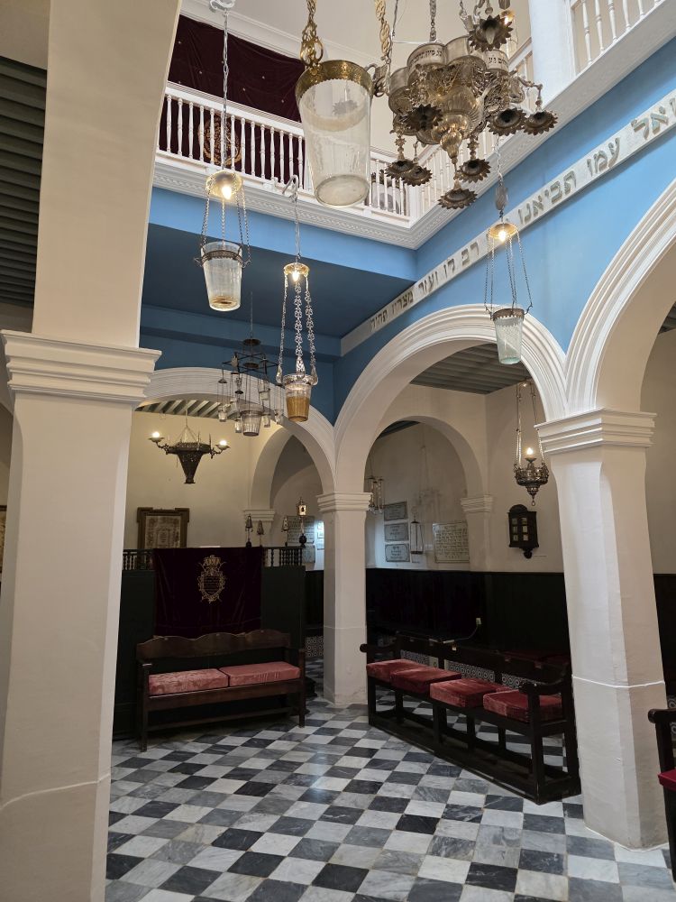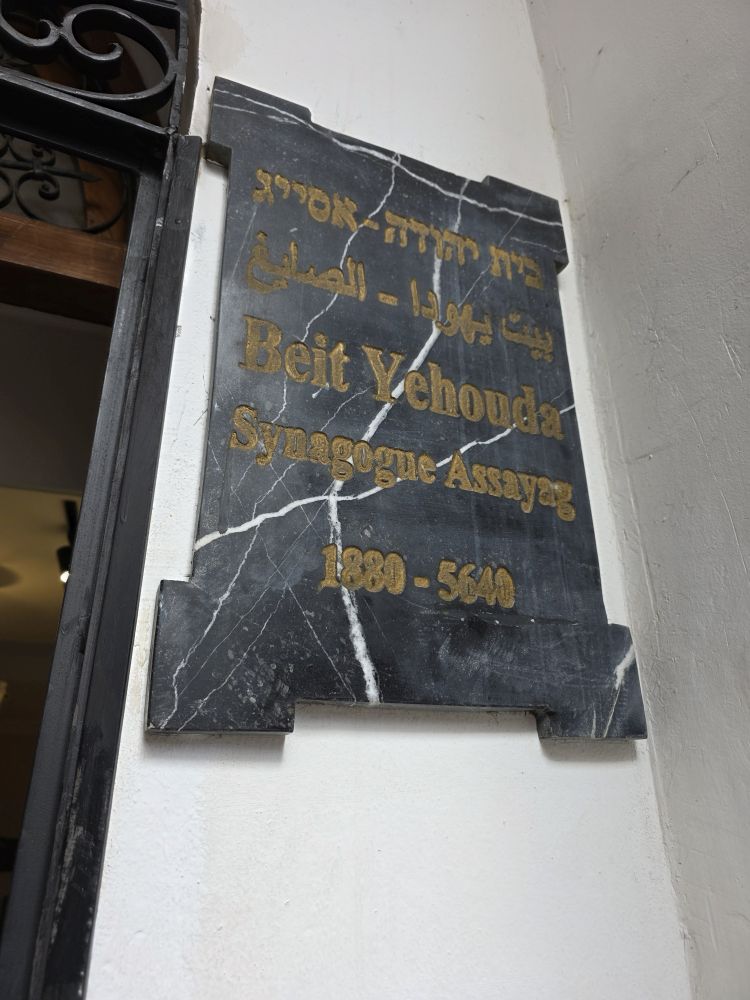 Totally tucked away in a little alleyway – past the olive market and the box of little nursing kittens – the old synagogue, built in 1890, has been preserved and maintained with added exhibits after the Israel-Morocco normalization agreement in 2020. The culture here is such that all religions are welcome and accepted. Hamid even shows us his membership card to an organization promoting Jewish-Moroccan relations. He is active in the community, also showing us a picture of himself and the Holocaust Foundation chair.