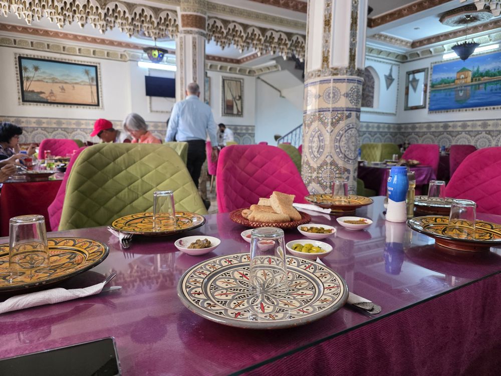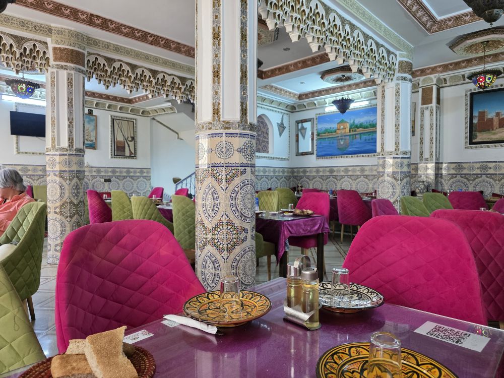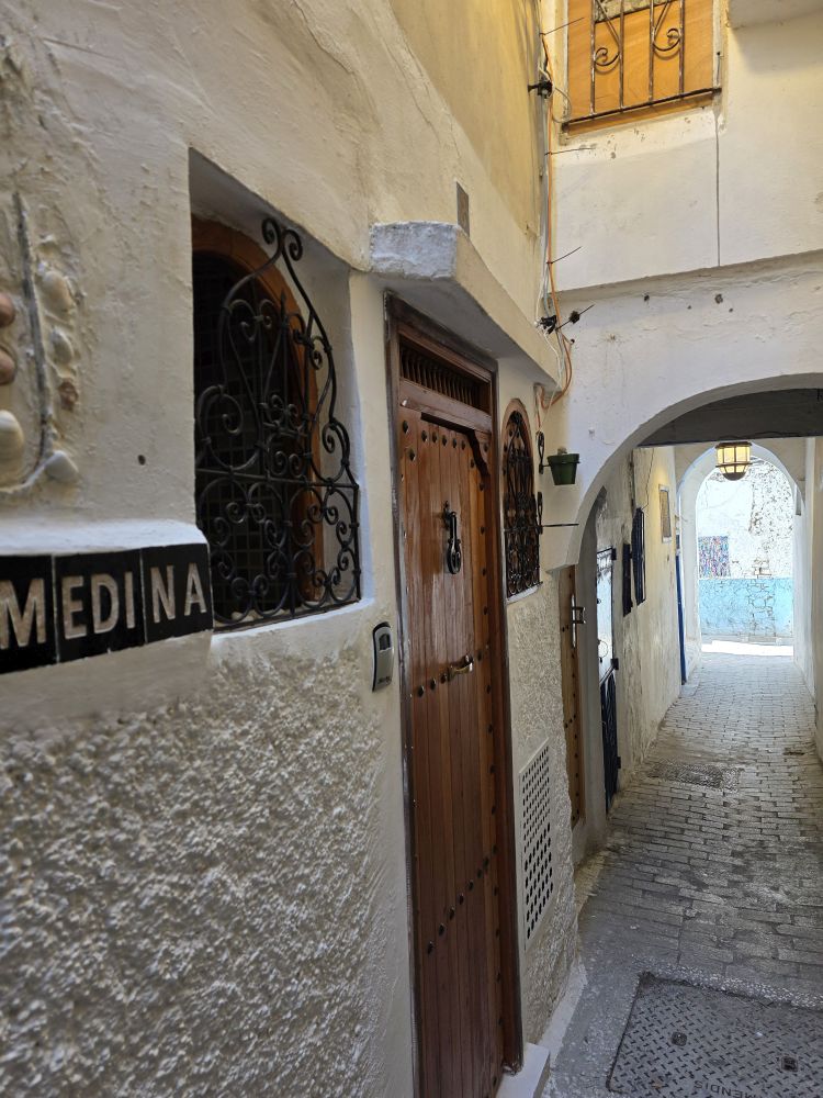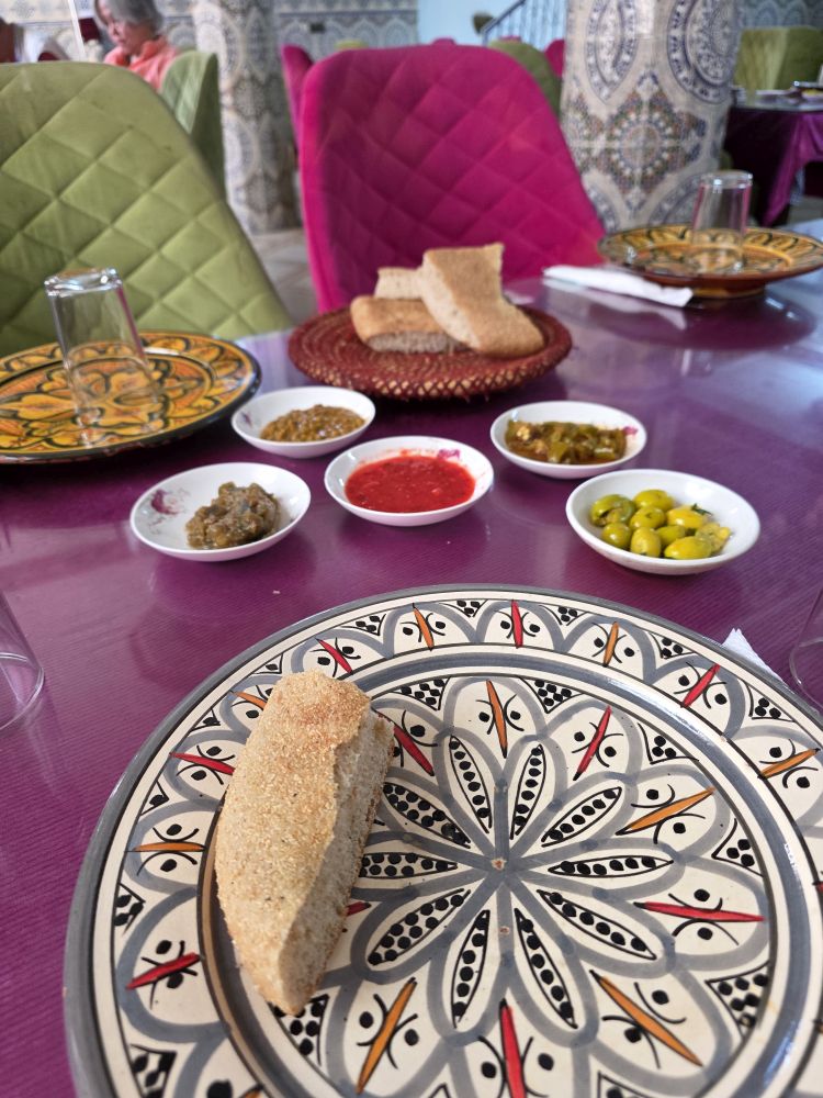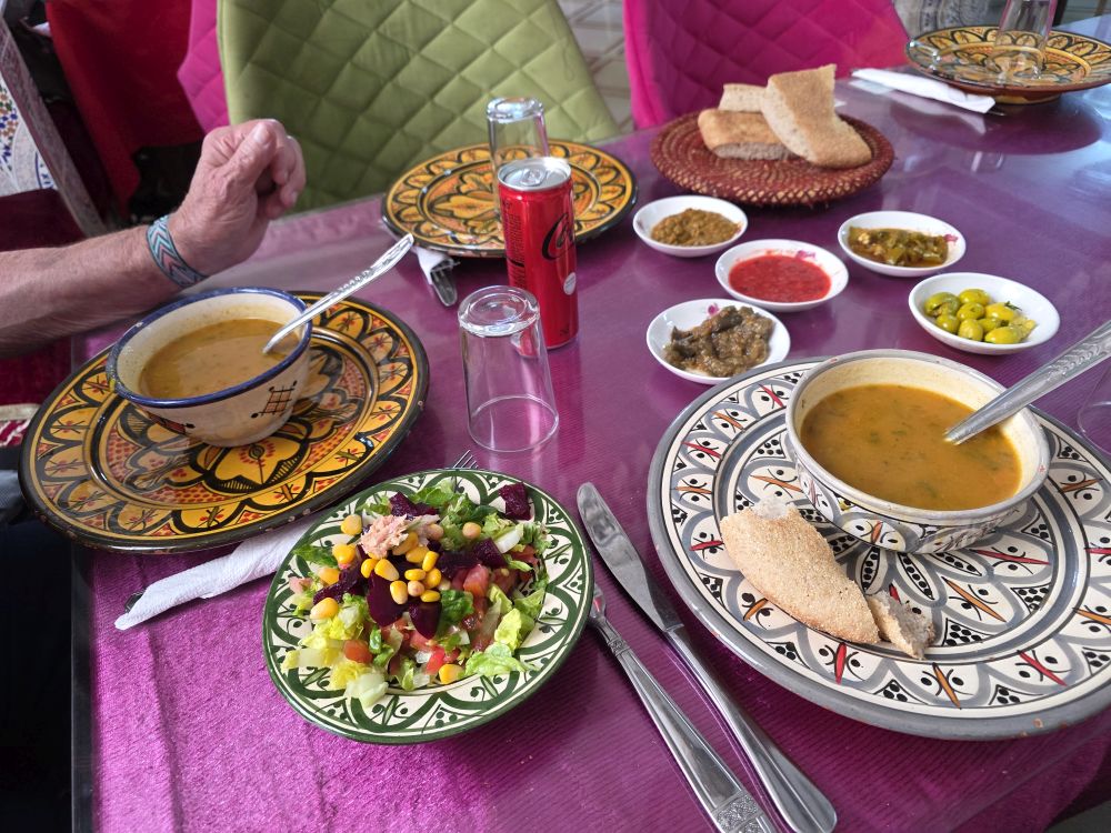 Rest done, we are back out into the Medina, wandering through lanes and streets with fabulous architecture and scenery. We stop at an overlook with more views over the water, before delving back into the Medina, now heading for lunch.