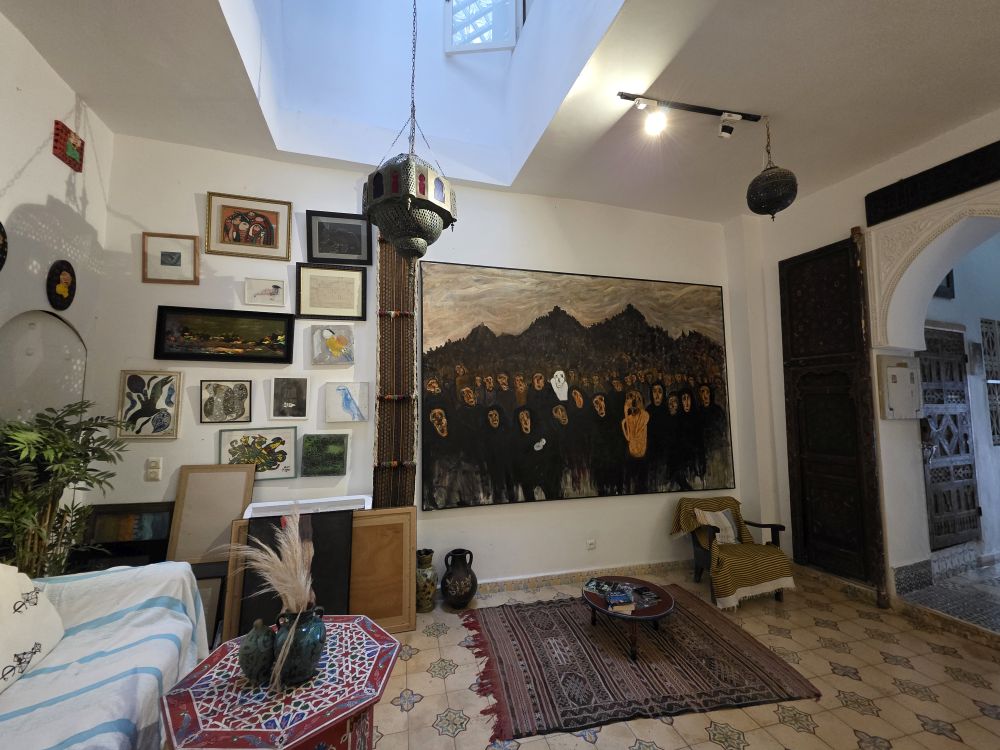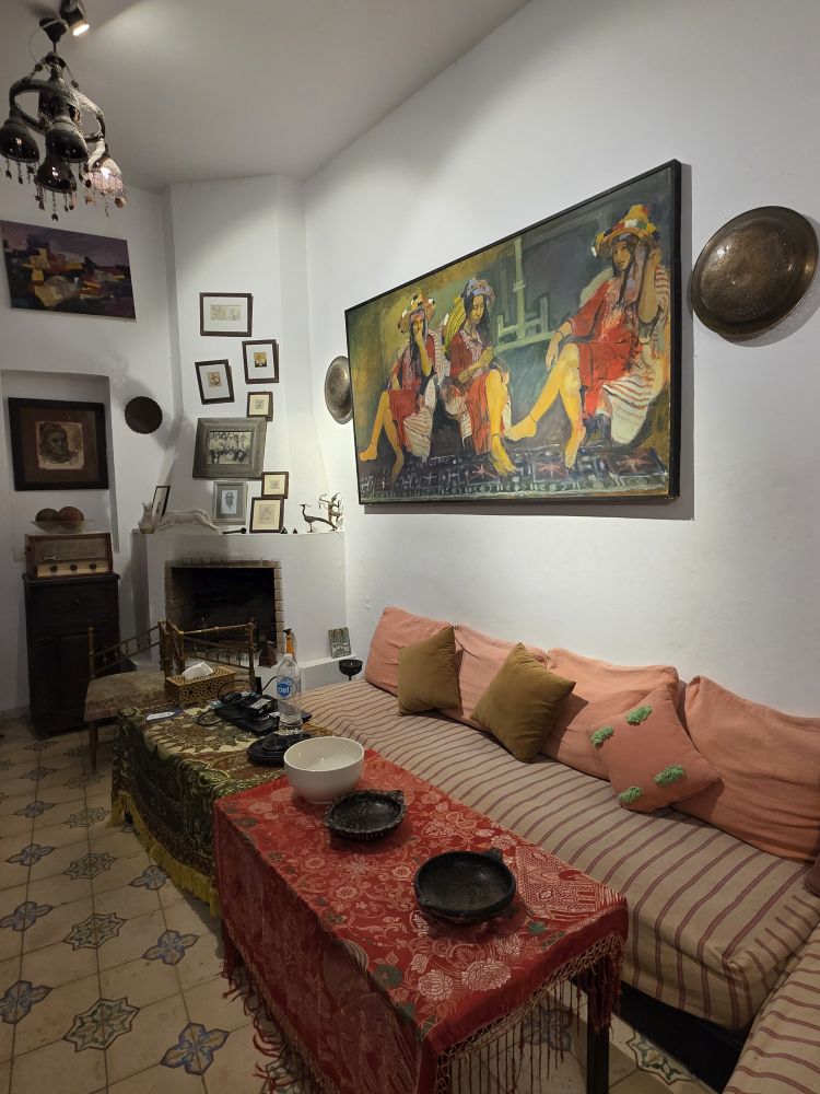 We also make a quick stop, just to rest, at a little 6 room hotel owned by a friend of Hamid (of course, who isn’t a friend of Hamid?). Traditional Moroccan architecture and decorations, with some lovely paintings, it was a nice little respite from our speed walk through the Medina.