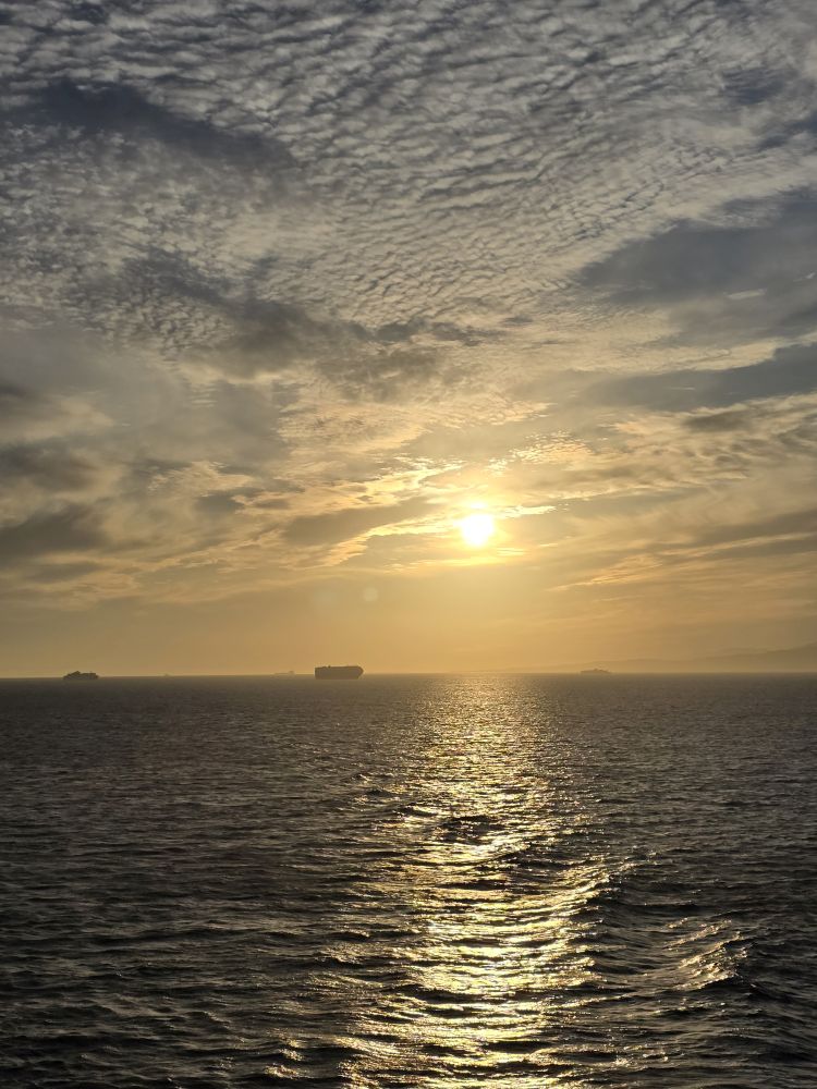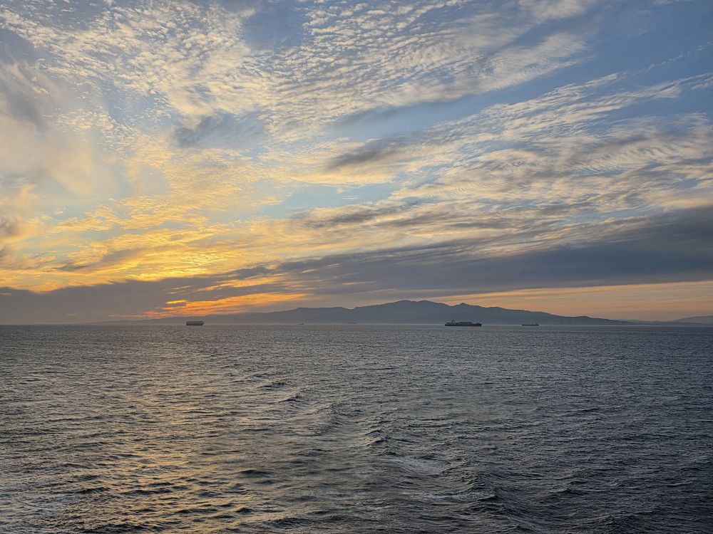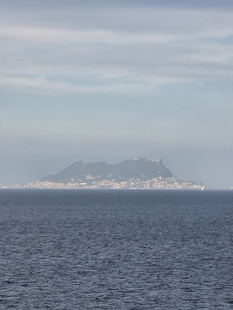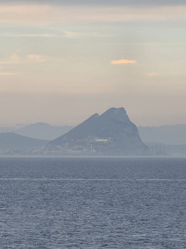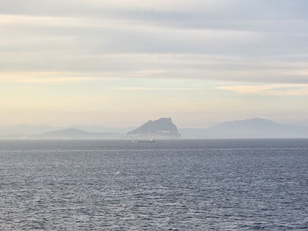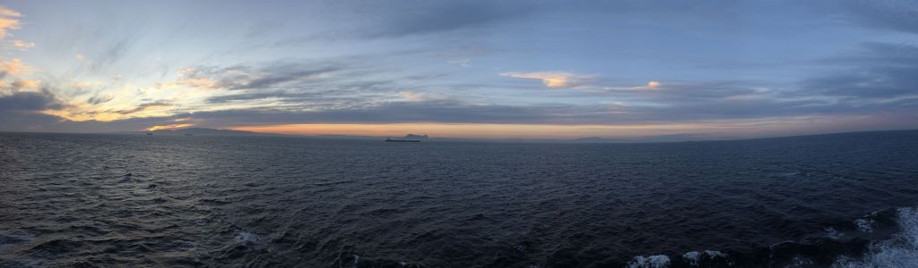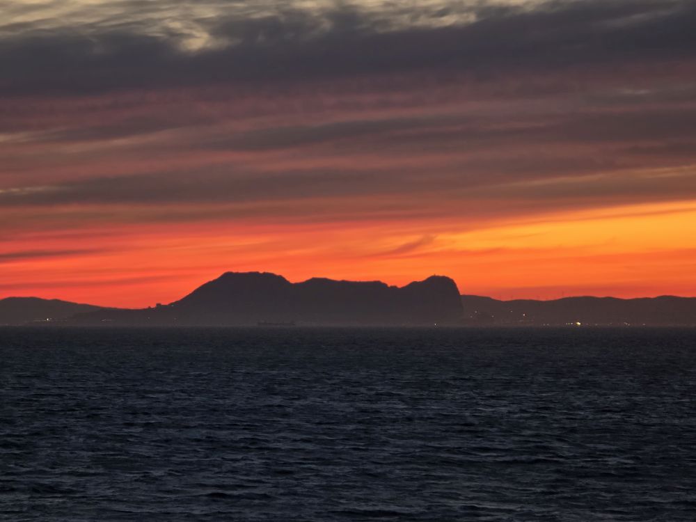 We’re back aboard fairly early (remember the speed walking!) so we have the rest of the afternoon to hang out, hit the gym, have dinner and be ready for our evening sail past Gibraltar. We are so lucky that the weather has cleared enough to see the hulking mountain there across the strait. Then of course there is the brilliant sunset, with Gibraltar in the distance. Perfect end to an absolutely perfect day.
