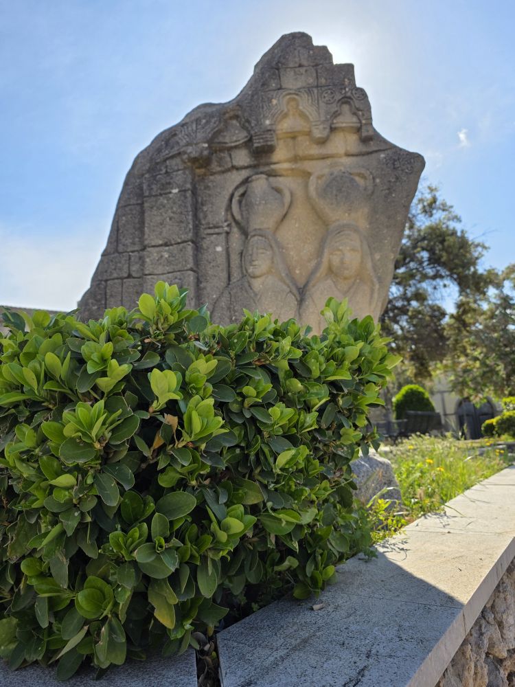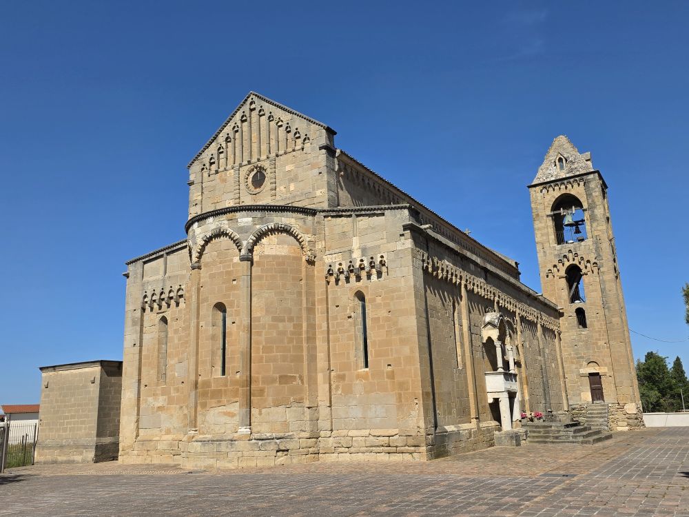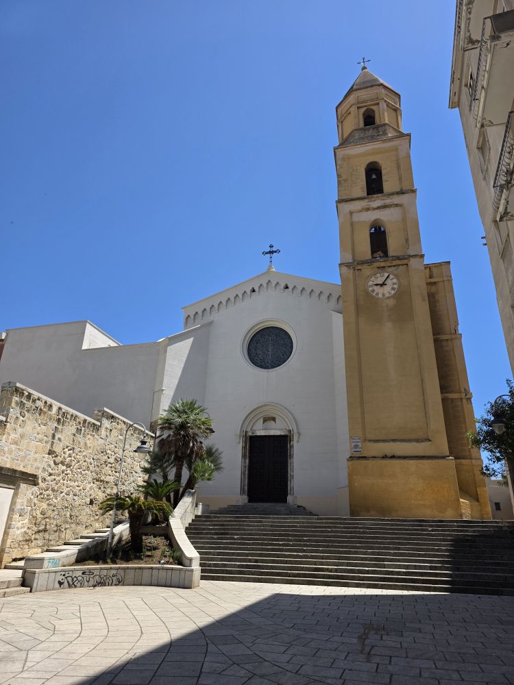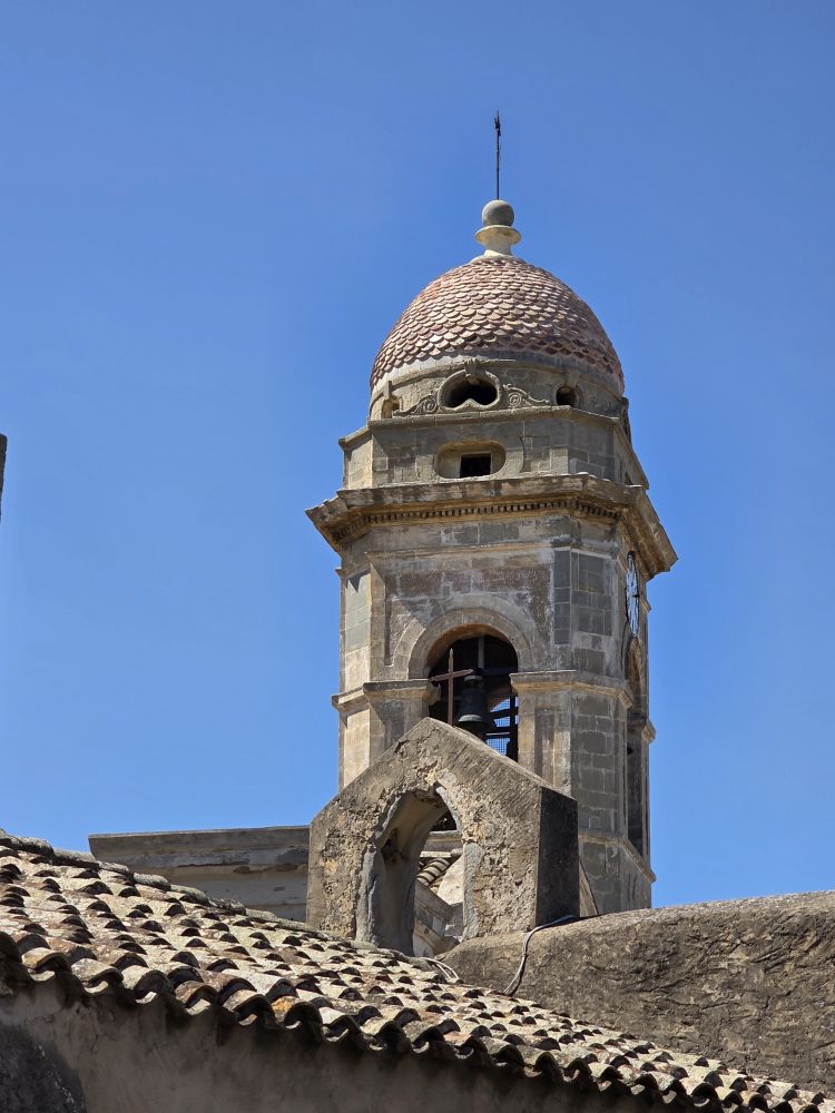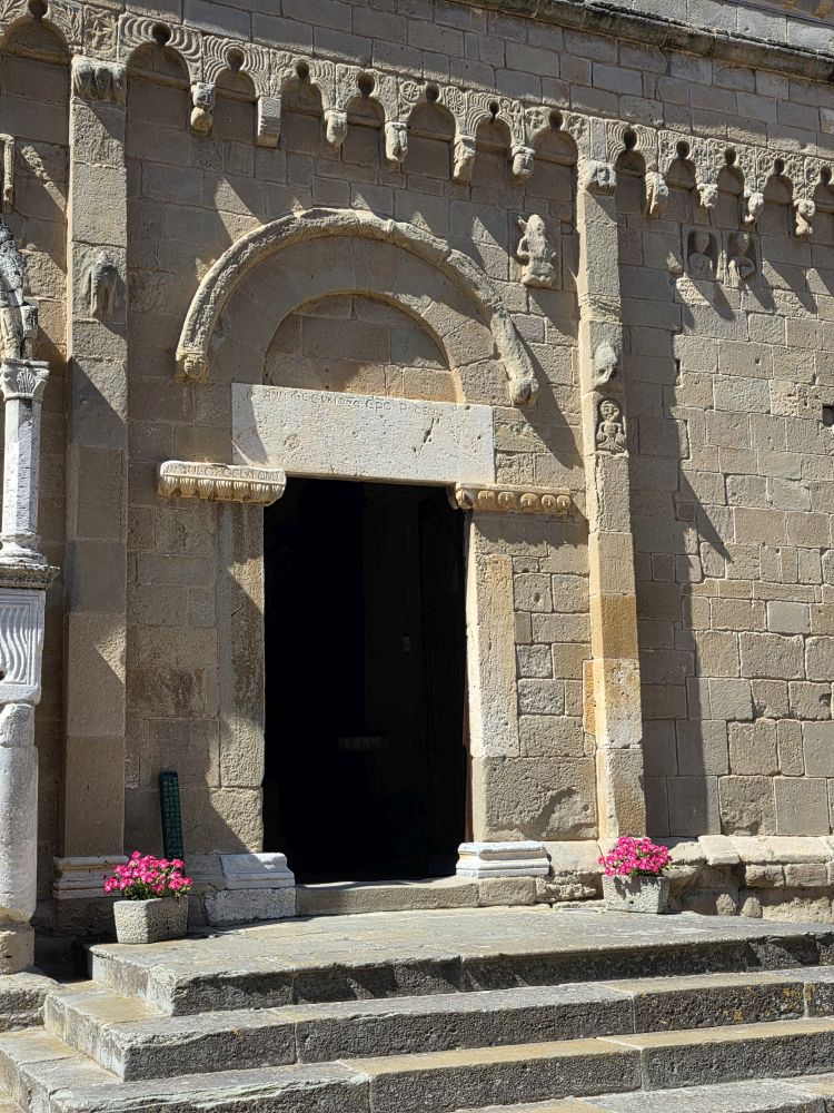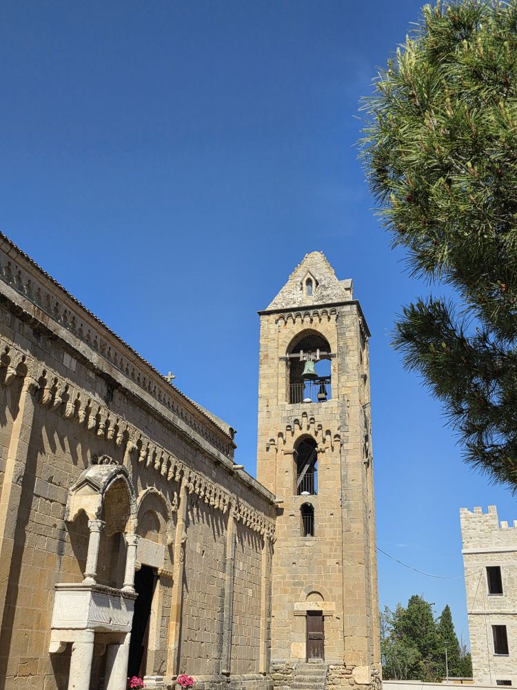 No communication from the museum yet, so off we go to explore the Church of San Pantaleo, the main church in town. As we are heading there, the Olive Oil museum replies. After some back and forth and negotiations, we end up not being able to take the tour due to timing, but they say we can come visit at 11am. Ok – deal done! We scurry over to the church – which is impressive to be sure. Built in the 13thC, it allegedly has a baptismal font from the 6thC inside. And while we’d love to go inside to see it – and the rest of the interior, we don’t have the time. Olive oil awaits!