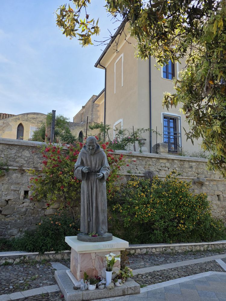 A short 30 minute drive brings us to the ample parking lot just on the outskirts of town. Even though we have to wait for the recycling truck to transfer its contents into another truck before we can access the parking spots, it is still easier to park here in the open lot than try to find parking on the little town streets. Walking into the center of town is an easy straight shot up the main road, passing by the Church of San Biagio, the former main church of Dolianova. Badly damaged in the late 1500s, it was completely rebuilt in the 1600 and 1700s, the bell tower added in the mid-1800s. Today it is just a stately looking piece of Gothic architecture at the beginning of the town, with an ancient rock carving on the corner of the church plaza and the statue of the Padre Pio – one the most revered saints of the 20th Century known for his stigmata and gift for healing – directly behind it.