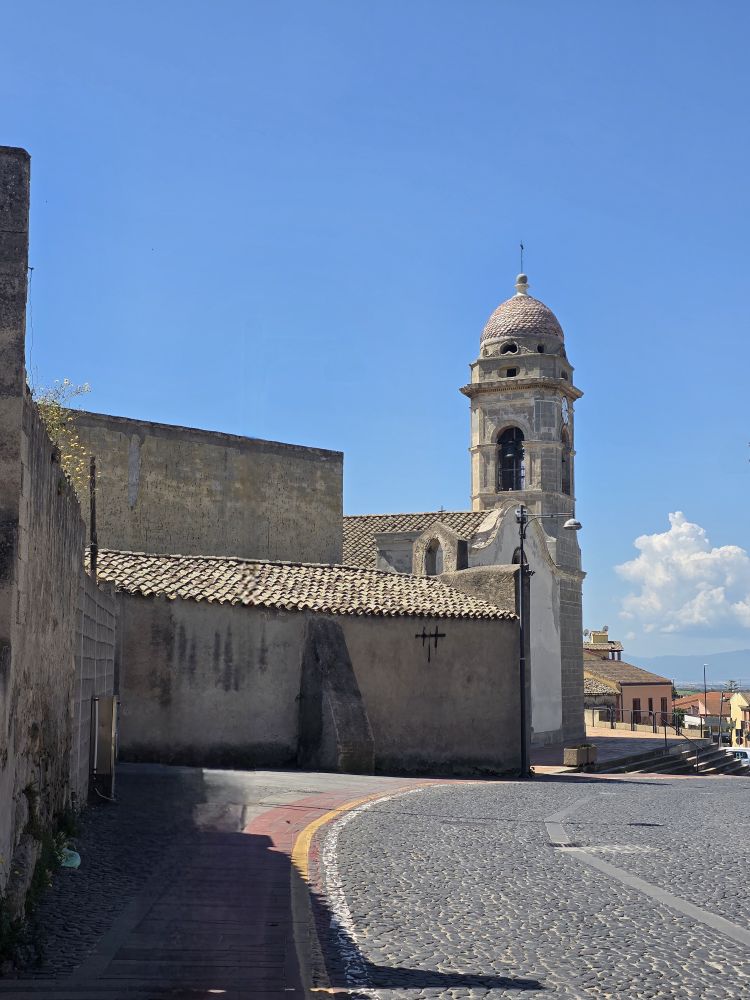 Originally, we had a whole day planned out visiting all the abandoned mines on the East side of the island. Those plans got scuttled when we realized that the mines are not open to the public at this time – only sporadically and sometimes only for group tours. It didn’t make sense to drive all that way to look at the properties through the fencing. All the trail hiking out that way looked suspect as well, so at the last minute we found Dolianova – a small town “off the beaten path” that has a reputation for olive oil, cheese and wine. We’re in. Although billed as “historical,” the town actually was formed in 1905 when 2 villages merged. There are old archeological findings near the town, nuraghe, which indicate human settlements from the prehistoric times, but we’re going to stay in the town today to explore.