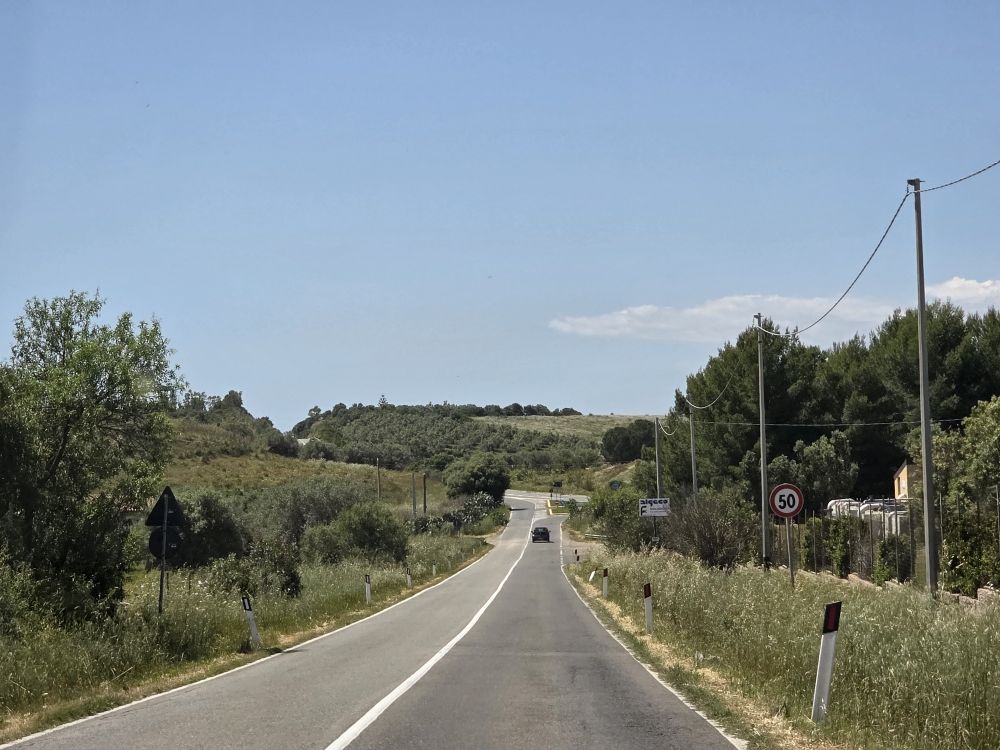 It is a slightly compressed morning – not to mention day – for us as we dock at 8 and have a car reserved first thing at Hertz in the port. We know we have to take a shuttle from the ship, so fast gym, fast breakfast, fast shower and we are out onto the first shuttle of the morning. The No-Rental-Car-Reservation idiots are also on the shuttle, pushing their way out the door of the bus first. Sigh. We just know where they are going. And, yes, they are heading straight to Hertz. Jeez. Well, we have all the time in the world so it isn’t an issue for us to just stand behind them while they dither about, asking about a car, not liking the price or the vehicle, and ending up going away to some other rental place. Good riddance, those people, honestly! Excitement for the day done, we get our car, which is a brand new with only 40km hybrid Panda (oh no! Not a new car! We still have nightmares about – and are very superstitious because of – the Villefranche/St. Paul de Vence car incident all those years ago!), manage to figure out the weird operation of the gearshift and are heading out of Cagliari a little before 9am. Not too shabby.