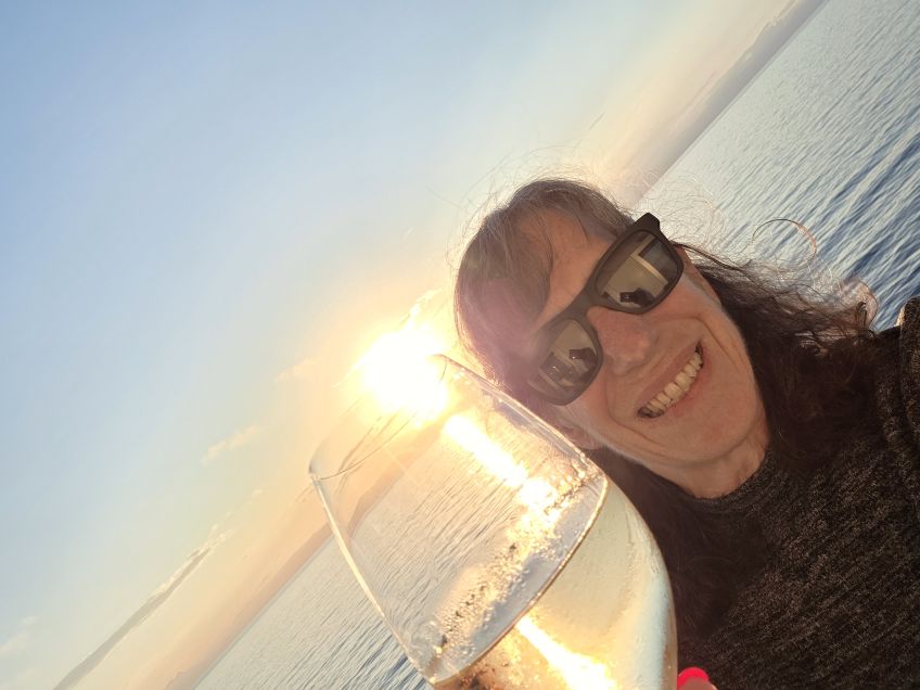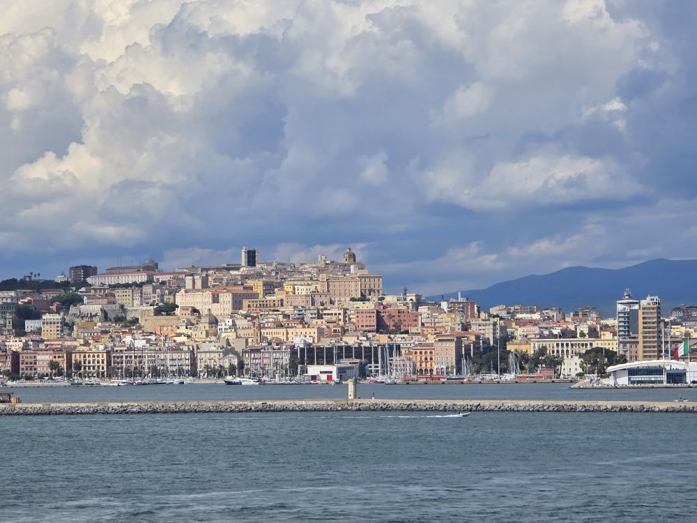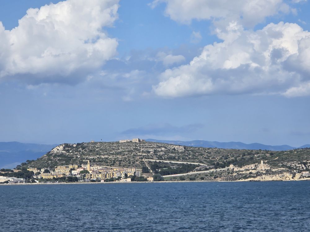 Back aboard, we hang out on the balcony, enjoying the gorgeous sail away, out of Cagliari, then along the coast and off into the Med.