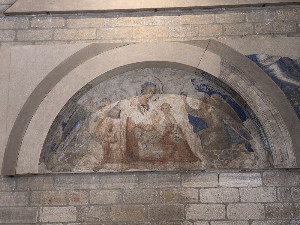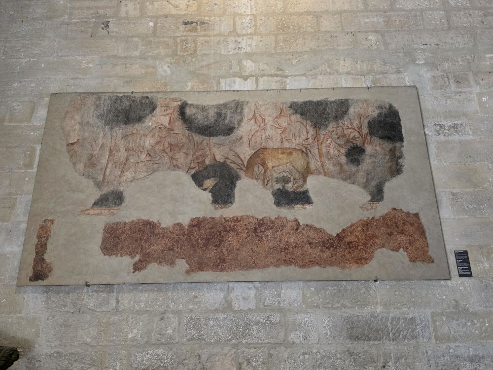 There is a museum type area that has examples of ancient doors and cupboard covers, as well as gargoyle waterspouts from the original Gothic roof. There is also a great display of 14thC pavement tiles that was uncovered in 1965.