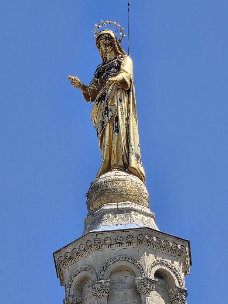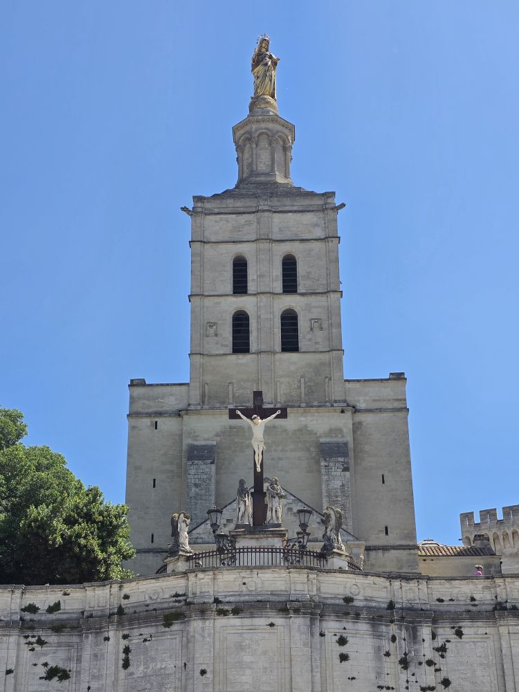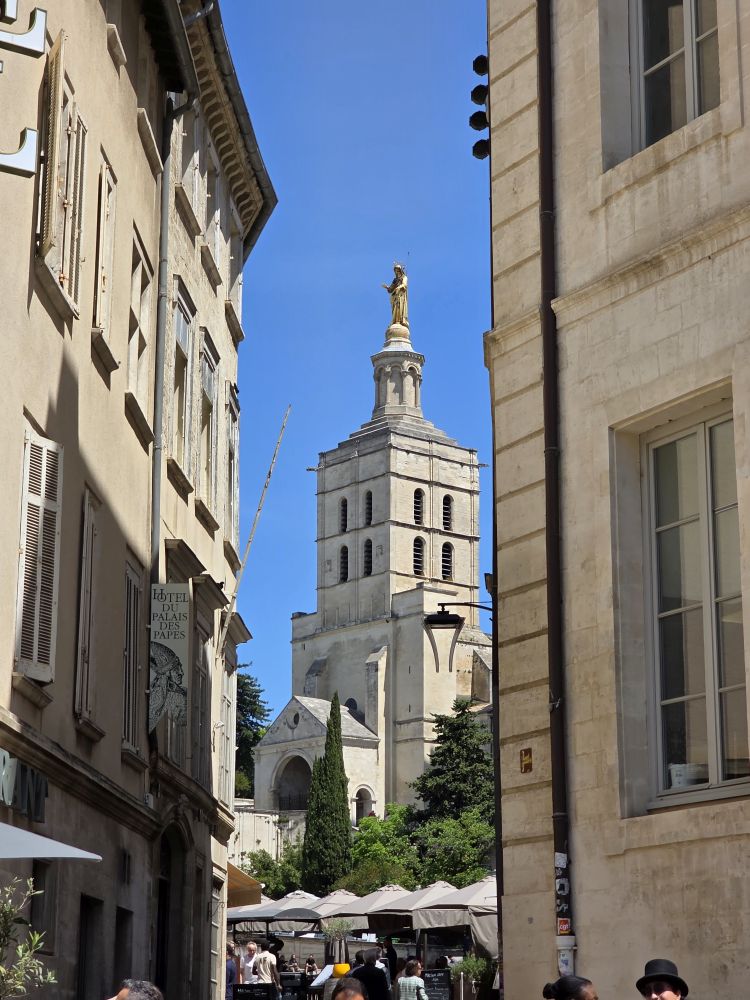 Perfect lunch complete, we move on to our next destination – the Pont du Avignon – walking through the Place du Palace, past the Palace walls, and right next door the Cathedrale Notre Dame des Doms.