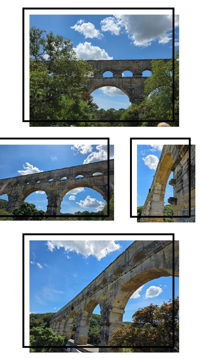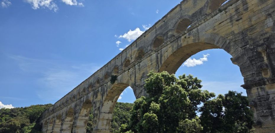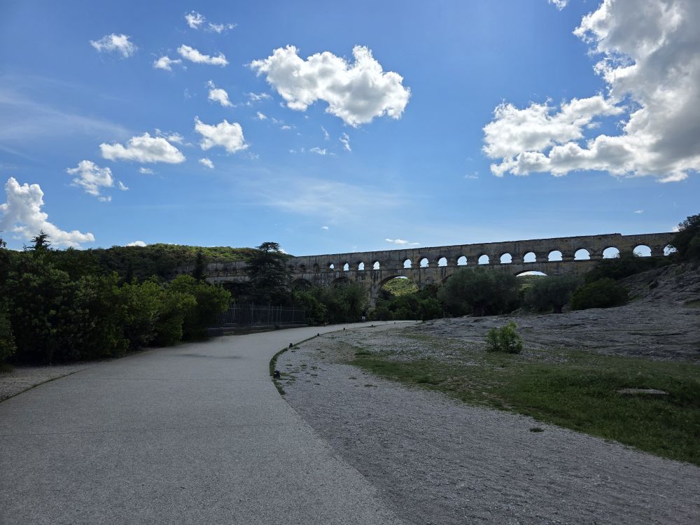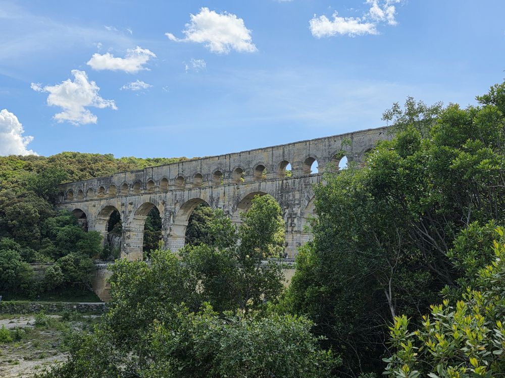 Where there are indeed incredible views across the aqueduct, down the river and through the trees (though not to Grandmother’s house) as well as out to what we presume to be Nimes in the distance.