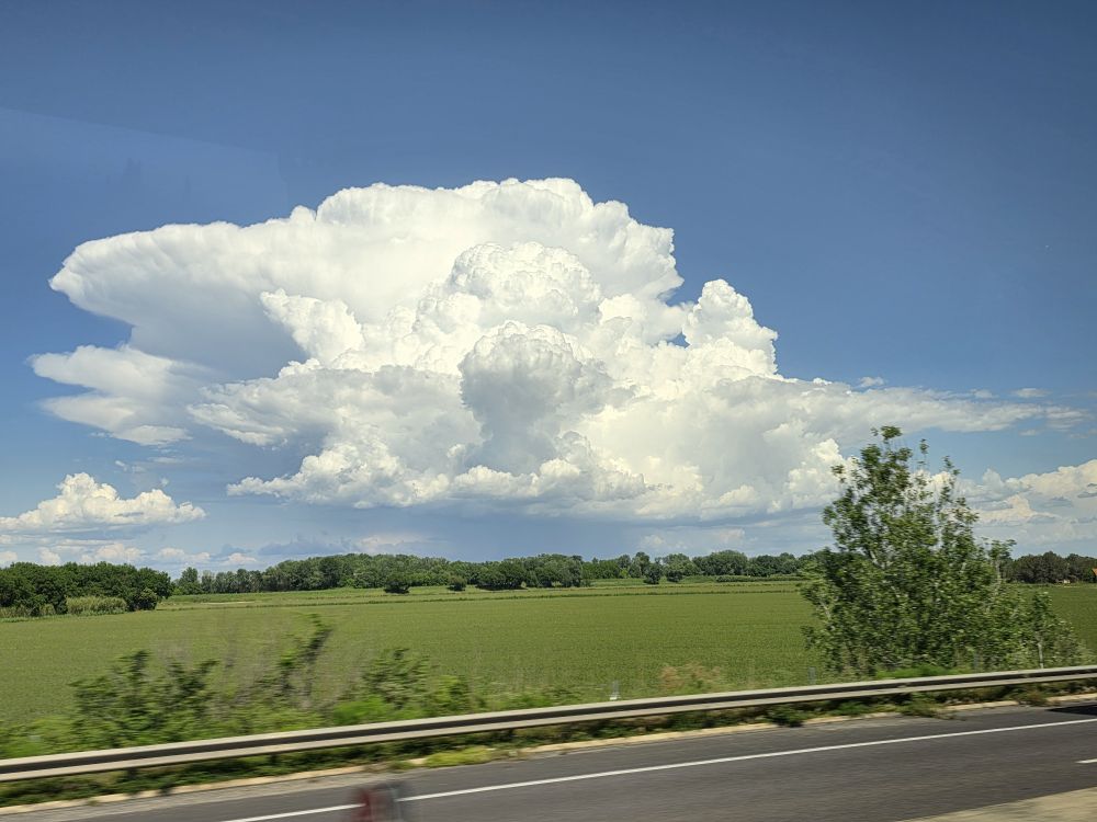 Back to the bus and a short, less than an hour, ride back to the port – during which we amuse ourselves by watching this amazing cloud formation over the farm fields.