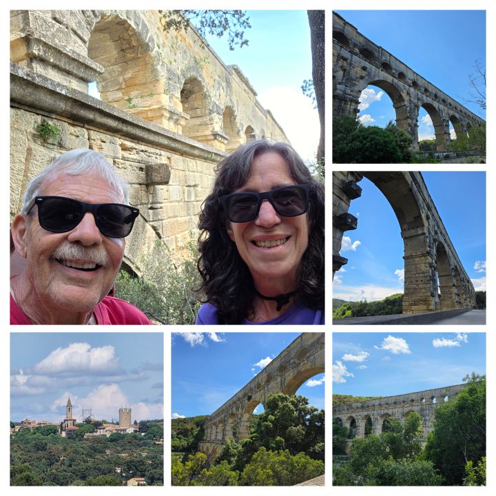 An hour’s drive through farmland and vineyards, we arrive at Pont du Gard – the architectural masterpiece built by the Romans in 50 AD supply the city of Nimes with water. The aqueduct has 3 stories, rising 165 feet as it spans the Gard river. Totally beautiful.