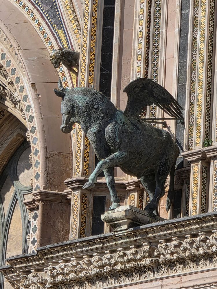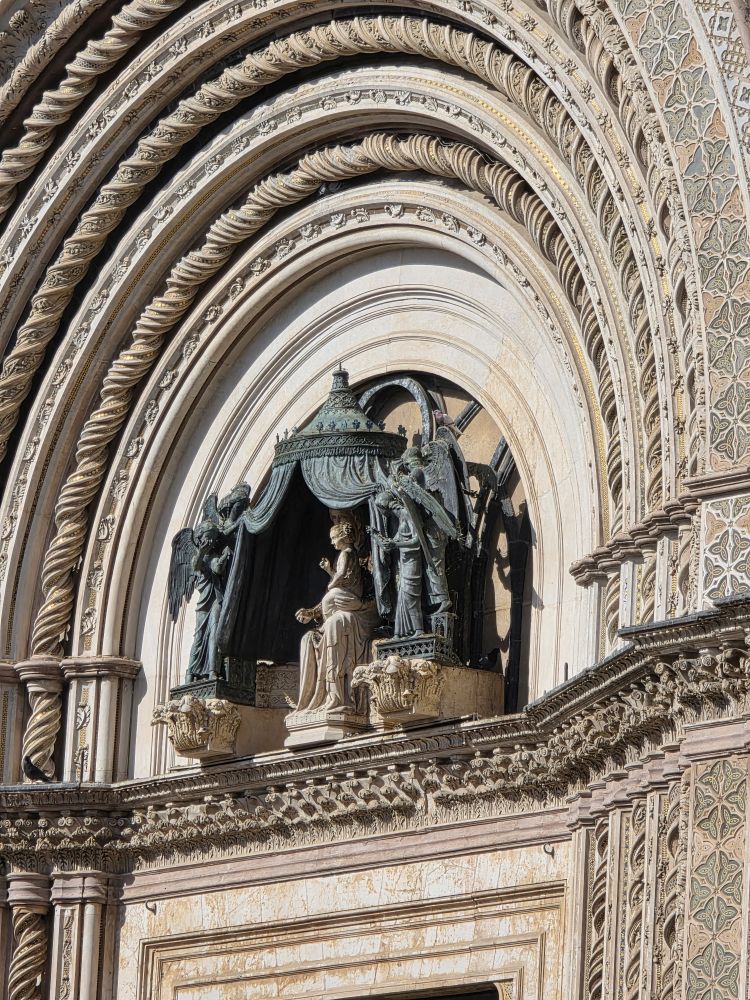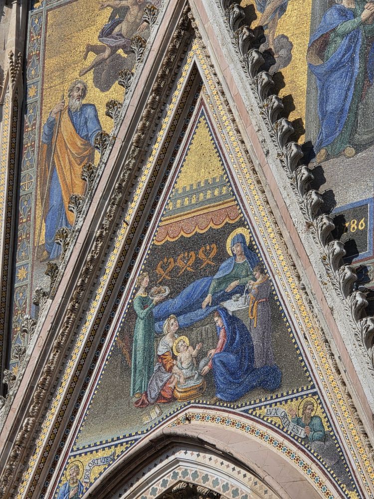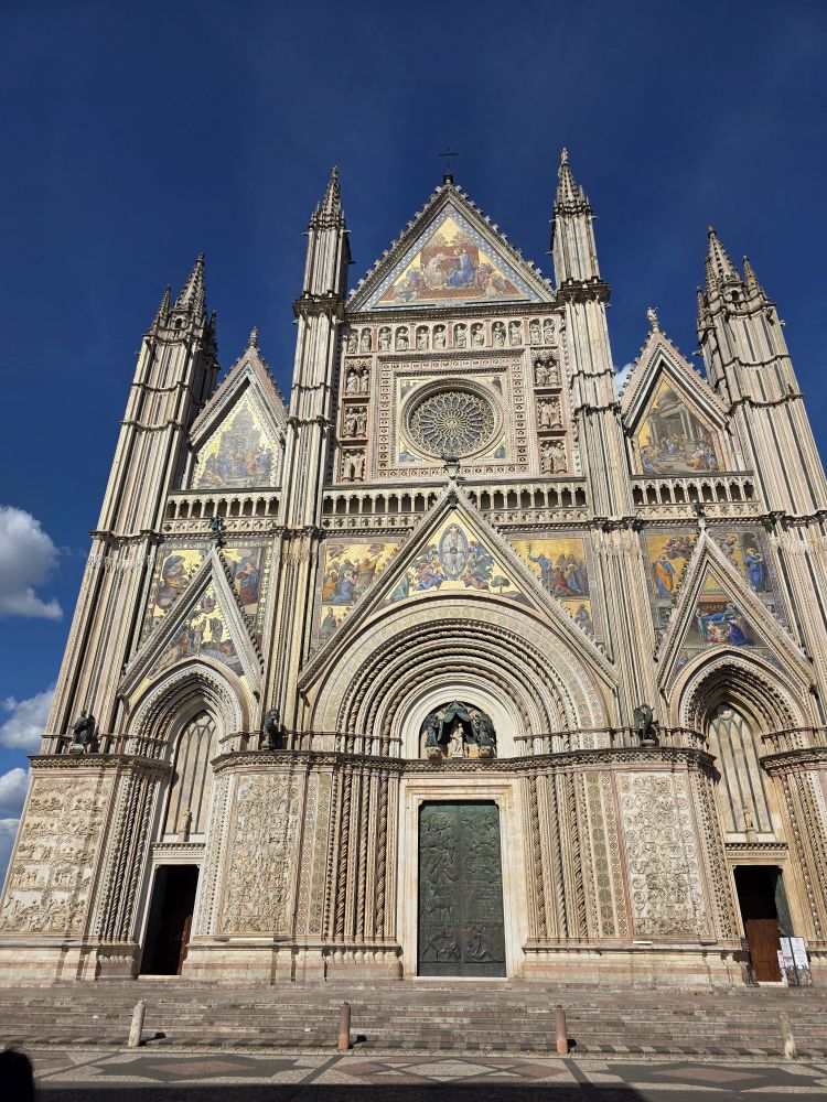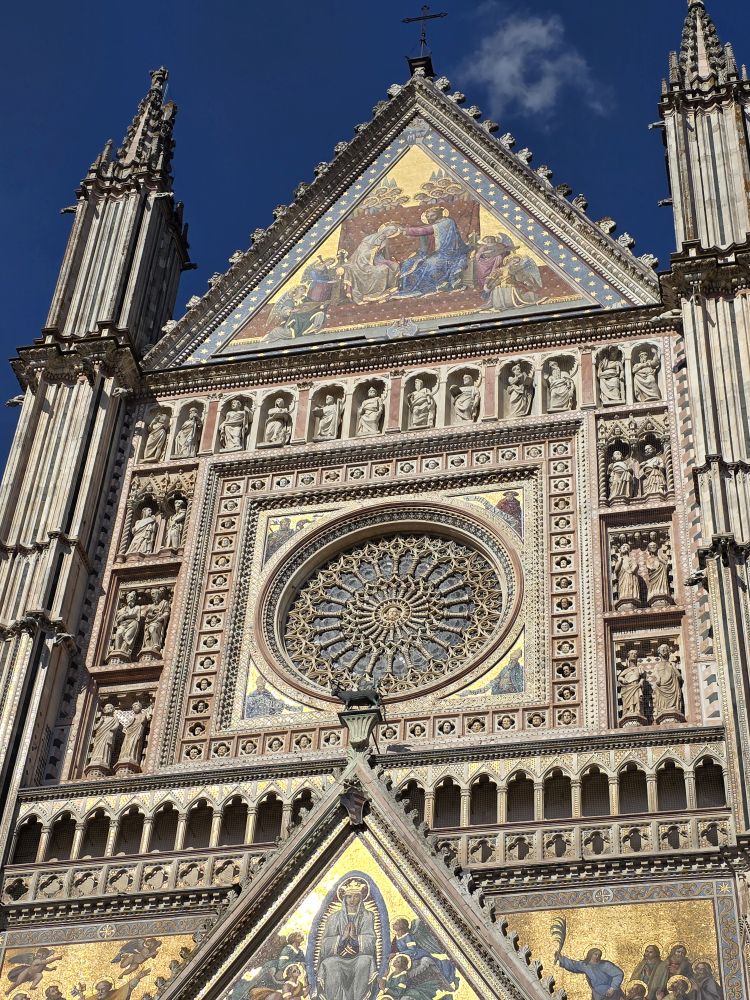 Buying our Orvieto Carta Unica, we now have access to all the main attractions around Orvieto for our explorations tomorrow, including this evening’s underground tour – although the card no longer public transportation on the little shuttle bus or funicular, that was ages ago, as the tourist lady tells us (yeah, we know, that’s how long we’ve been coming here!). While we wait for the tour to begin, we amuse ourselves by playing with the zoom on our phone cameras to take tons of pictures of the Duomo, perfectly lit in the late afternoon sun.