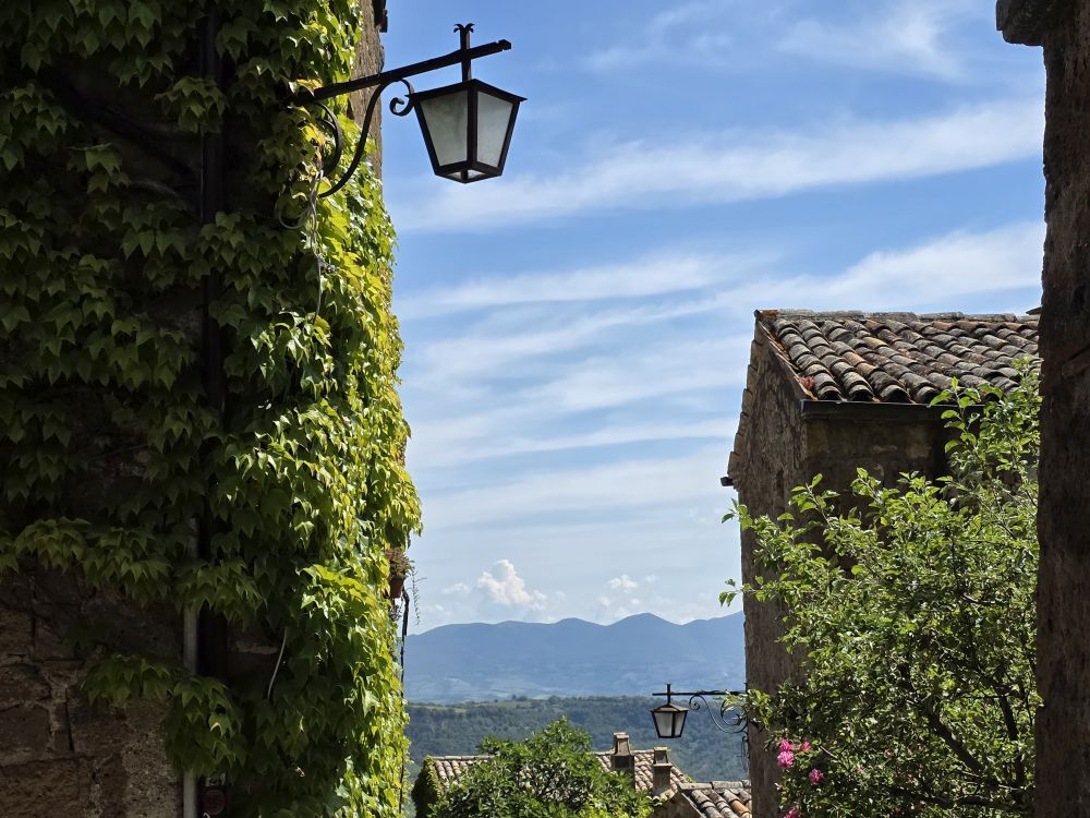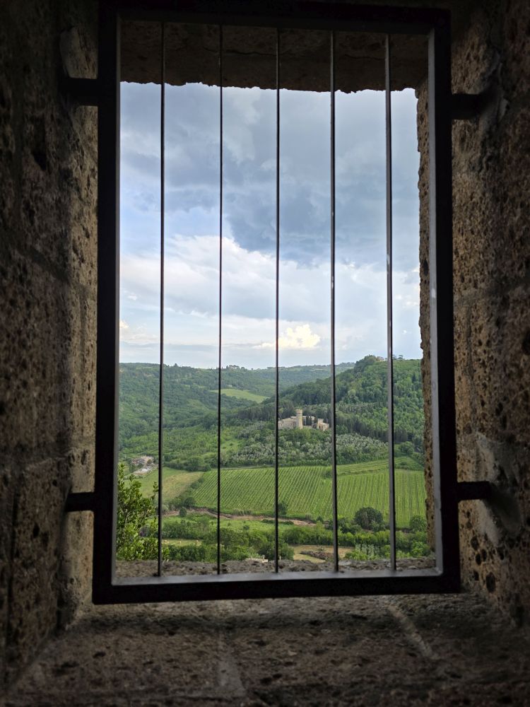Coffee and breakfast done, we walk down to the garage, along Via Medici, introducing G&S to the wonders of Orvieto. The views from here up on this side of the town are just stunning. With the Porto Romano right there at eye level, looking out across the hills to and the farm houses, villages and farmland. It’s a perfect day here in Umbria.
