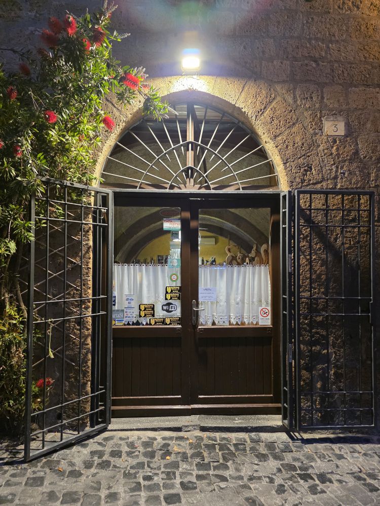 That ends the underground tour. We spend a few minutes taking pictures of the beautiful scenery surrounding Orvieto, Sigis chats with Jessica for a while as we walk out onto the Piazza Duomo, then we head into town on our way to drinks at the Blue Bar with Anthony. We’ve not been here in years and are looking forward to connecting with him again.