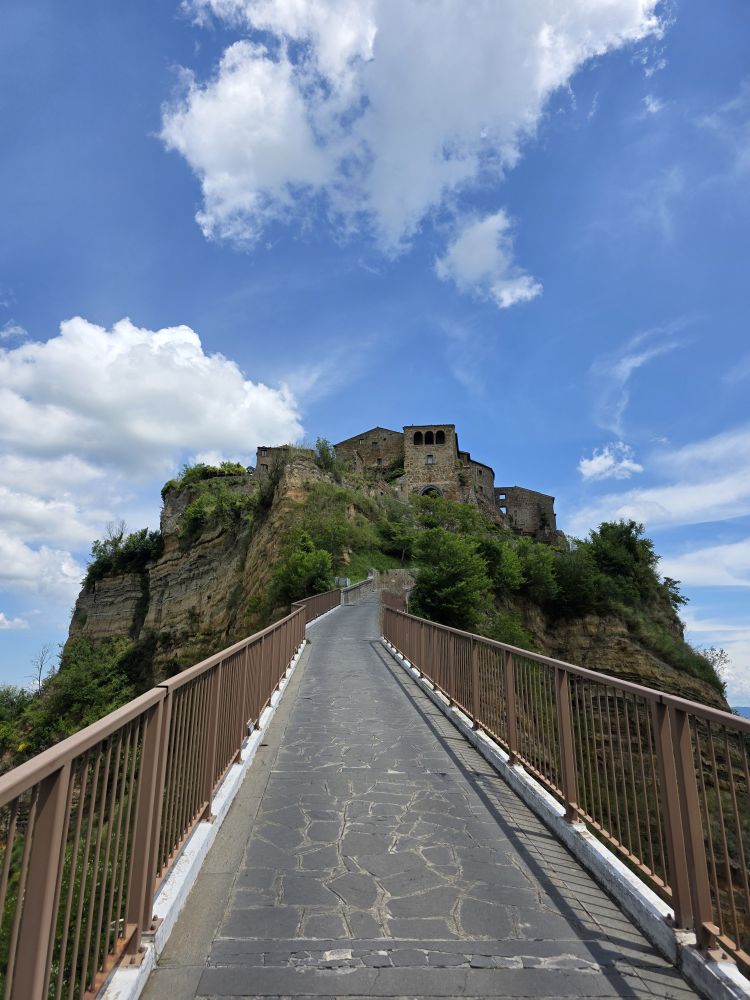 Paying our entrance fee (ok, that’s changed – as has everything – inflation), we begin our trek over the bridge, snapping picture after picture, and making ourselves as small as possible to allow the little civita open sided truck to pass. That was tight!
