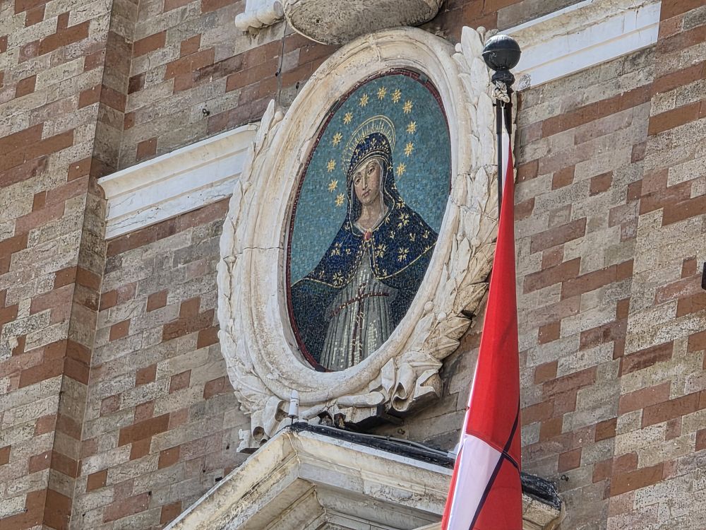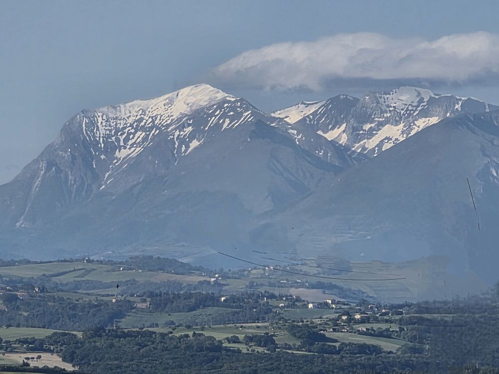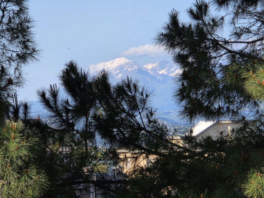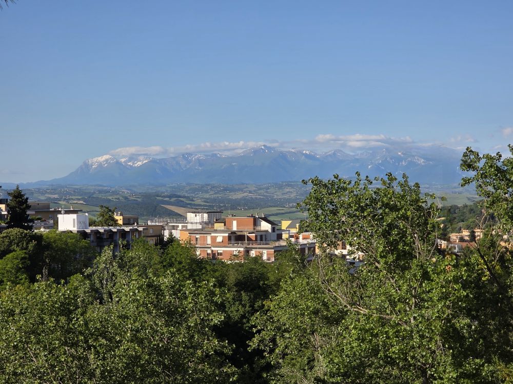 The day dawns bright and sunny, off we go for our morning exercise. There is a park/garden very near us, which, on the map, looks like a good place to walk and wander this morning. Unfortunately, upon arrival, we find it is a slightly small, round grassy area, surrounding by a walking/biking track, but that is currently closed for renovation work. Well, bummer. We still walk around the perimeter a bit, then wander down toward the Parco Urbano di Fontescodella – an urban forest with lots of great walking trails, also unfortunately closed for renovations. Well, pooh. At least we got some beautiful shots of the snow covered mountains.