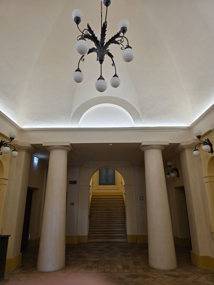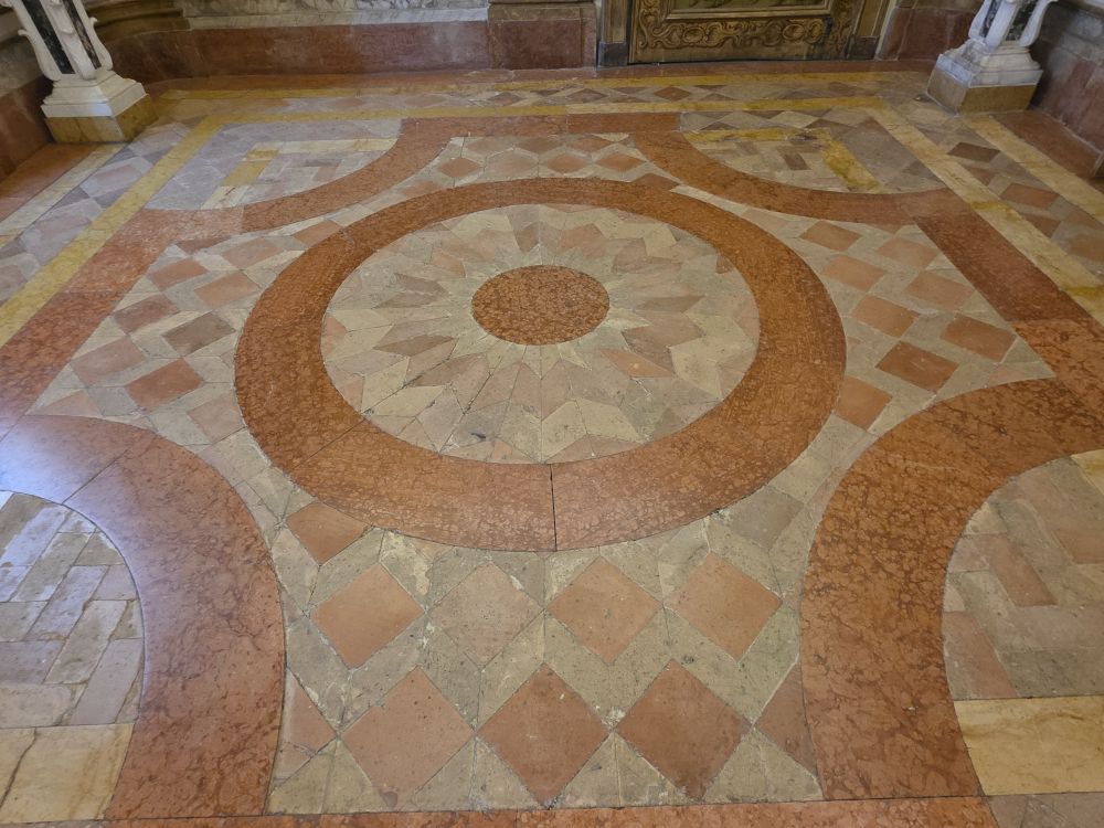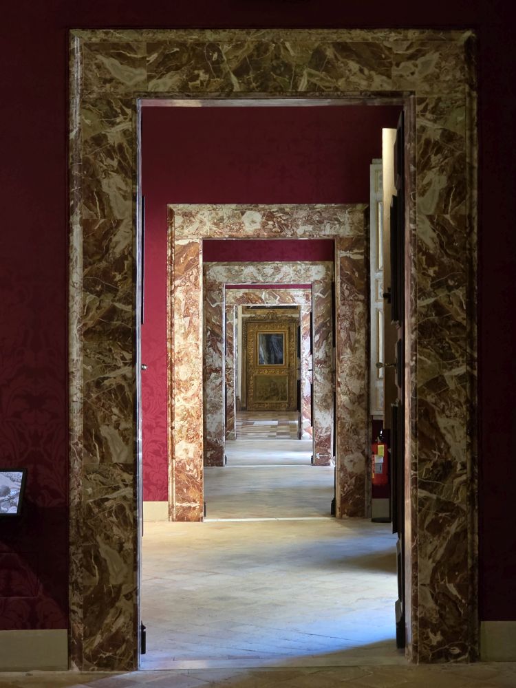 And so it went – the weirdly modern, the gorgeous palace design of room after room with polished wooden door frames, more frescoes and period furniture.
