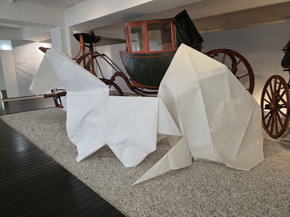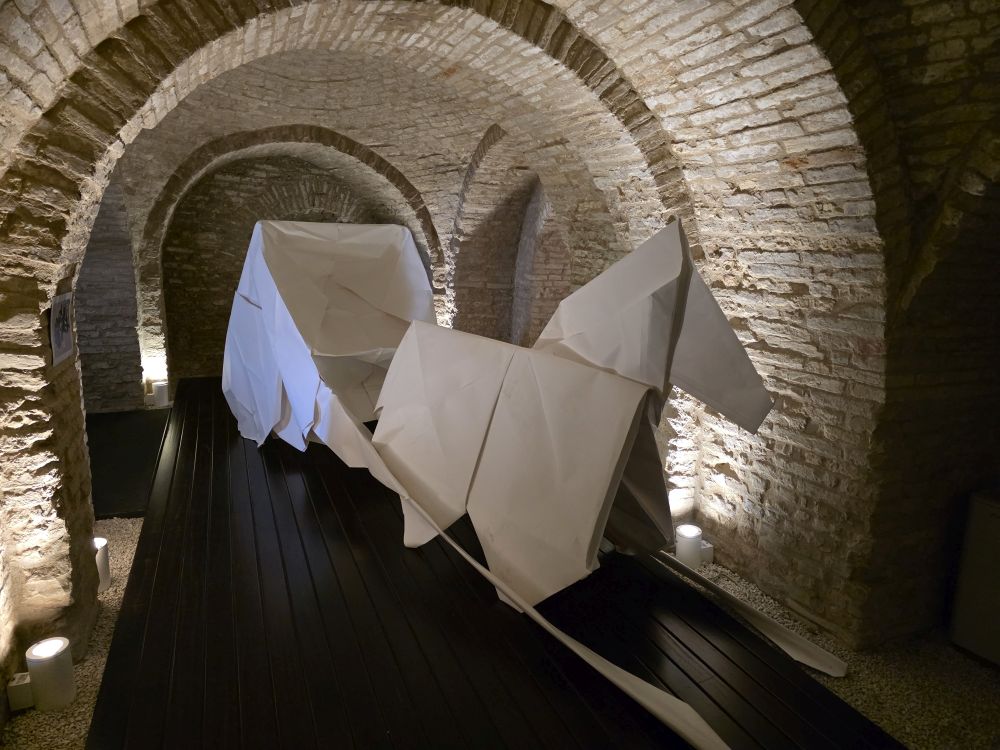 As is the Paper Carriage exhibit, a “participatory artistic installation” of huge, full size, paper recreations of horses and carriages that was created by University and High School students. A short video shows the process, and the installation, which included a parade of the paper carriages through the streets of Macerata. Nice.