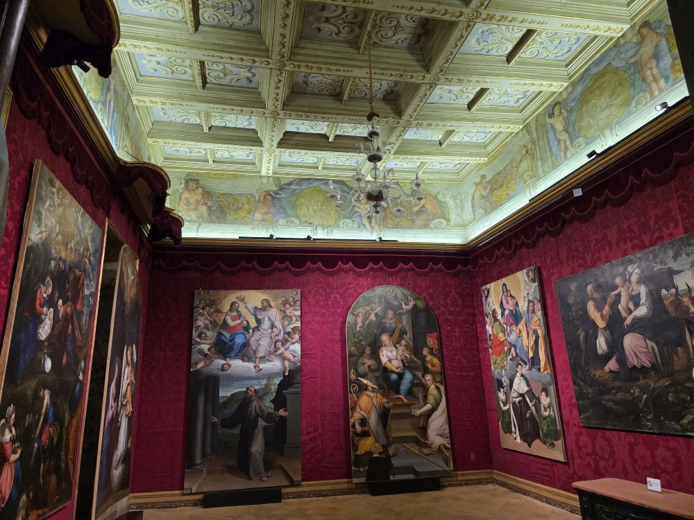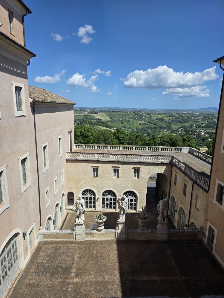 Built in the 18th C as a residence for the family of Count Simone Buonaccorsi, the Palazzo is a series of existing older buildings incorporated together. The exterior is rather non-descript, but with a fabulous Italianate garden with blusters and statues of Hercules. Interspersed throughout the different wings and rooms are the galleries and exhibits.