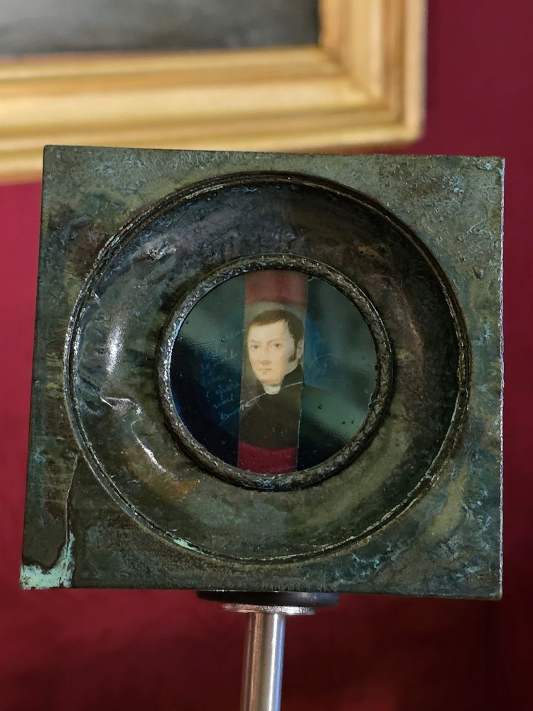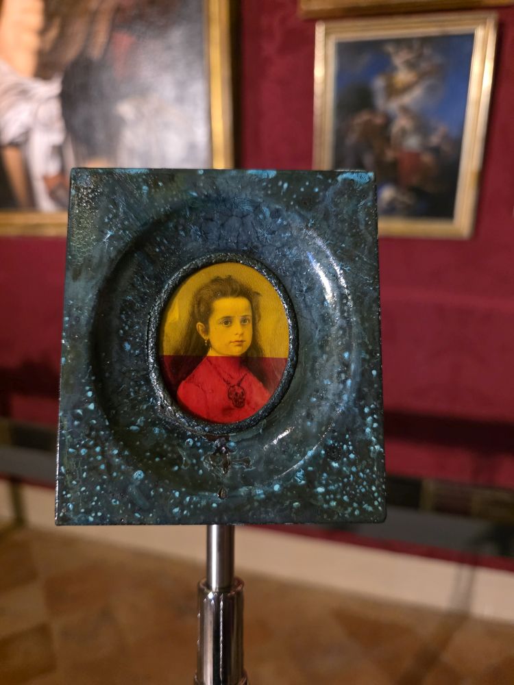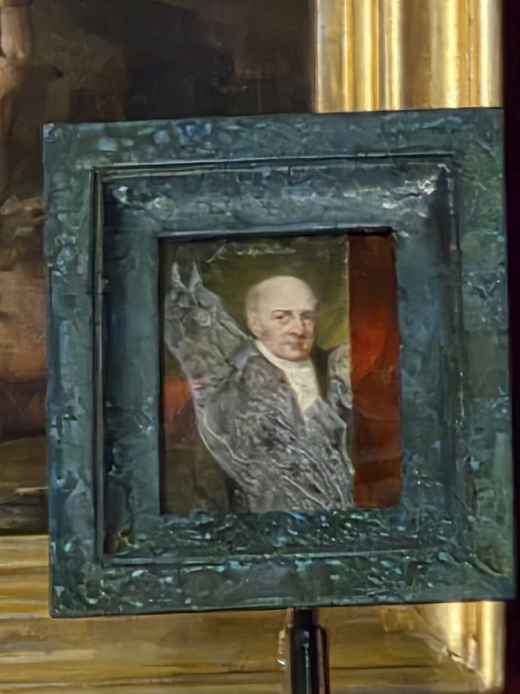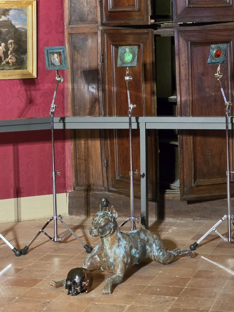 Another room holds classic portrait style paintings, along with small little portraits inside metal frames attached to tripod stands with a metal pit bull looking dog guarding a skull sitting in the midst of them. Strange? Yes. Oddly interesting? Definitely.