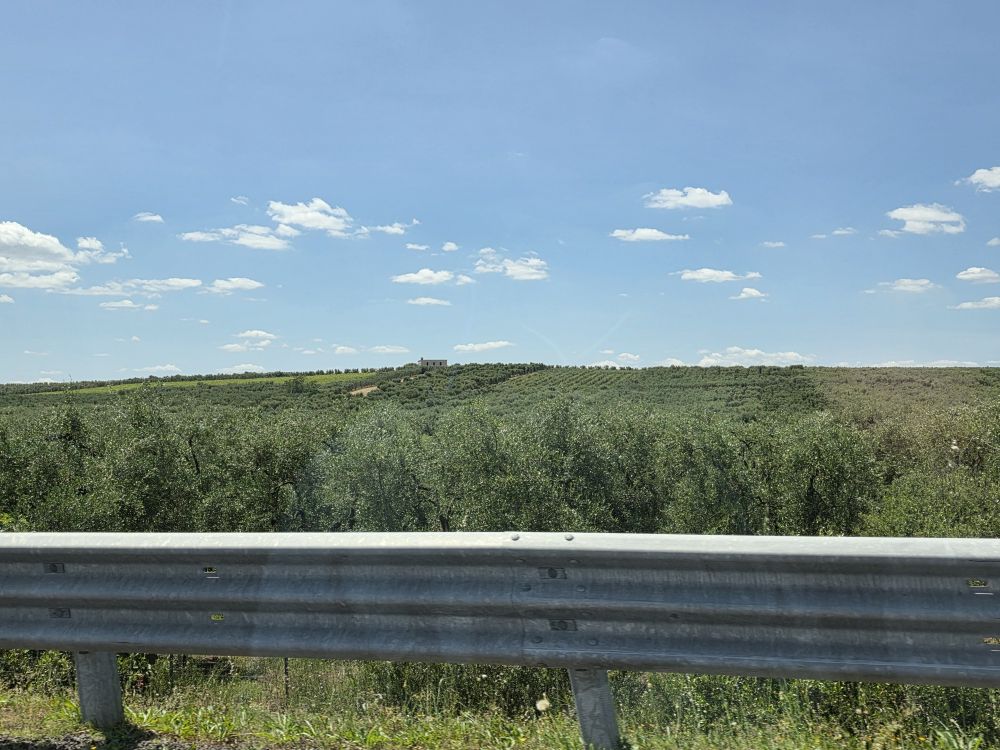 We are up and out early, because our host in Corato has said we can arrive at 1, so we want to be sure to be on time as she is making an exception for us. Sadly though, we get stuck in traffic hell. The construction on the autostrada is never ending – going down to 1 lane constantly. Just when we get up to speed on 2 lanes, here comes another lane shut down. So frustrating. The scenery is gorgeous though – the snowcapped mountains are never far from our vision leading to way too many pictures being taken out the windows of the car.