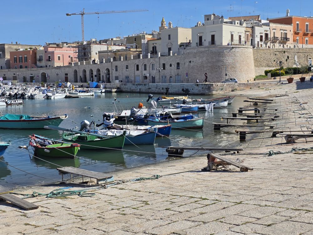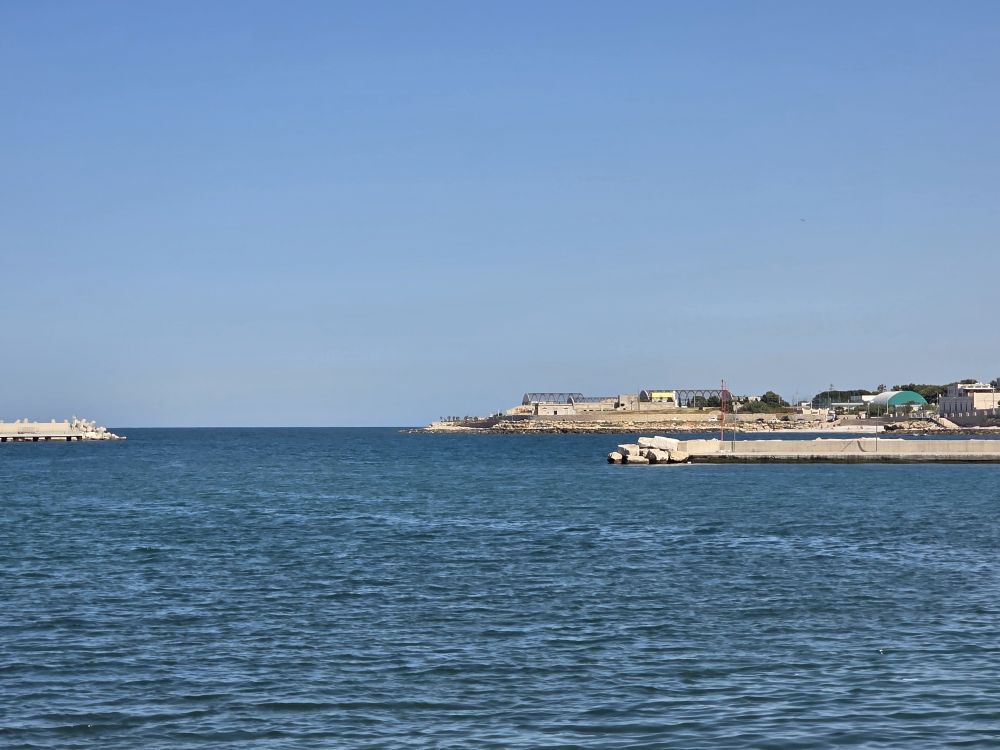 After getting settled, we make our way through the confusing little streets to Lidl for supplies. Deciding to eat in these next 2 nights (no way we are driving out that narrow lane to get food at night), we pick up way too much food – as always. Once our goodies are organized, we decide to find someplace to walk, which ends up being the seafront promenade in Bisceglie, a seaside town 20 minutes away.