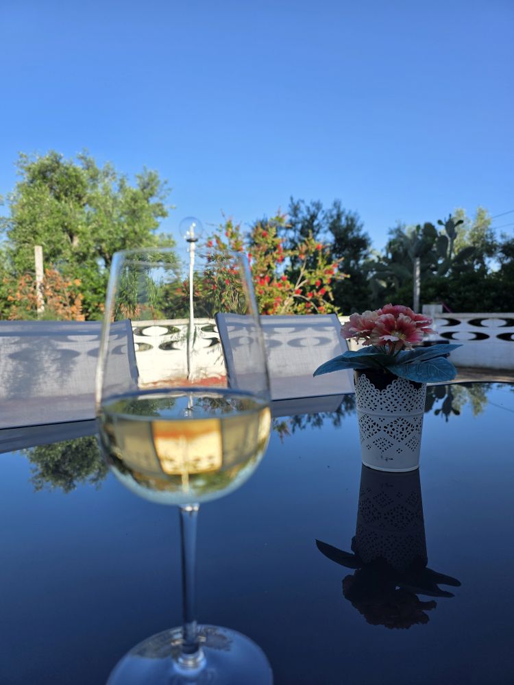 Photos taken, we return to the car, choosing to picnic there, inside the car, so we can arrive at the cottage on schedule. And arrive on time, we do, after driving through the changing landscape of vineyards and olive groves and the narrow little lane that will become our street for the next 2 days.