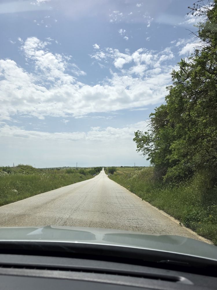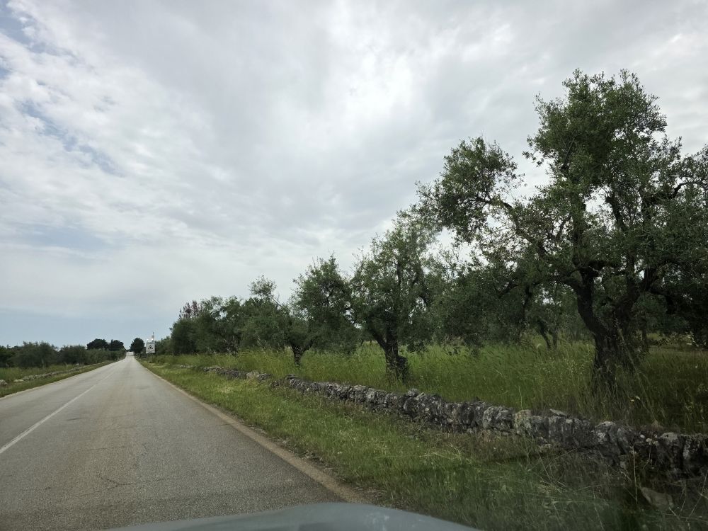 And now we are off through the park, looking for a picnic spot. The roads are, once again, virtually empty, lined on either side with rock walls and olive groves. And those weird little stone beehive structures. Remember, this park is massive and not a single good map to be had, basically I think because it is so massive. There are different archeological digs and ruins around, but nothing that resembles hiking trails or picnic areas. We end up just choosing a point on the map that says it is the “National Park of Alta Murgia” but which ends up being a really narrow, sometimes rock wall lined, dirt road that leads to some agrotourism place or something. Oops. Reverse course! We’ll just stop at the end of the road in a little pull out, near where it intersects the main road, and picnic in the car. Works for us – it is quiet, we are surrounded by farm fields with a nice breeze blowing. Lovely.