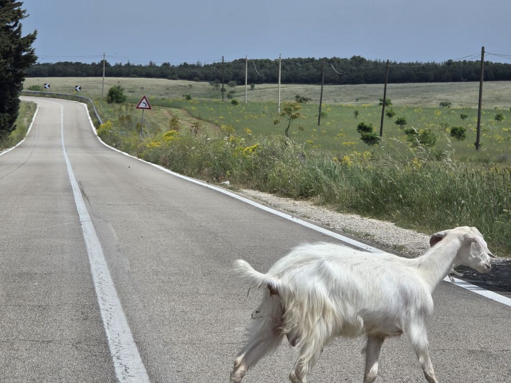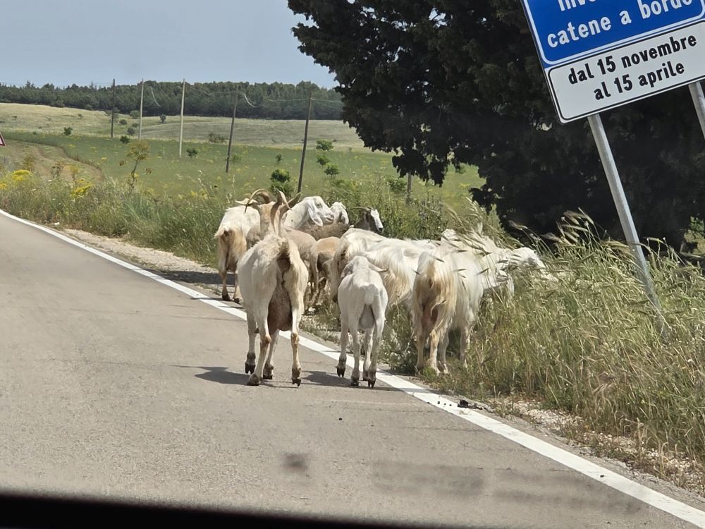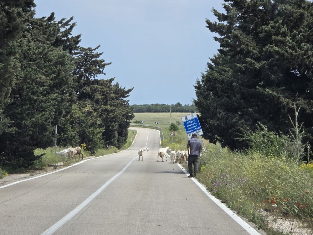 While eating our picnic sandwiches, we did some research on sights around us, discovering a little forest grove and a path called the Dolina Tre Paduli – built in the 1600s for the Franciscan friars to get from their farmhouse to the monastery in the nearby town. Ok. Game on. Off we go through the olive grove lined road stretching out to the horizon. It is so hard to accurately describe the view, the vastness of it all. Along the way of course, more traffic challenges. This time of the sheep kind! Fortunately the sheepherder does an excellent job of getting everyone off the road safely and we continue on our journey to the Dolina.