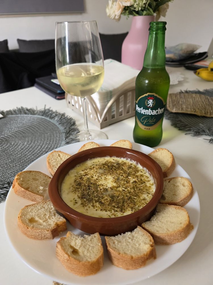 Returning home, we have late afternoon snacks with the Provolone Dolce we bought at Lidl – that comes complete with its own terracotta bowl. Seriously. Oh, it only cost 2 Euro 69. Yeah. Prices here. Amazing. And it is really good – all gooey and tasty with oregano sprinkled on top. Great appetizer to go with our beer and wine in the great room.