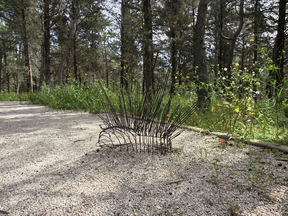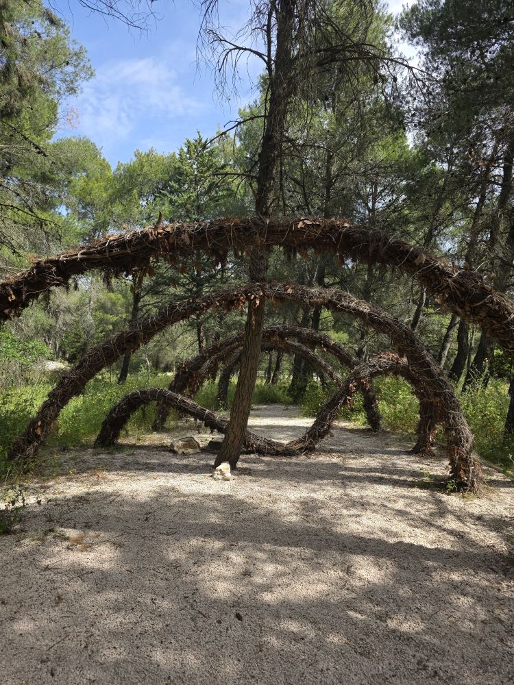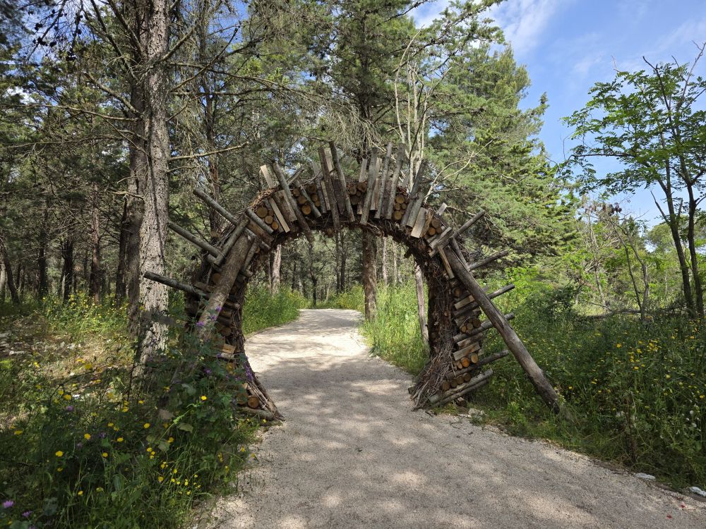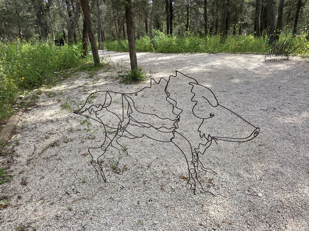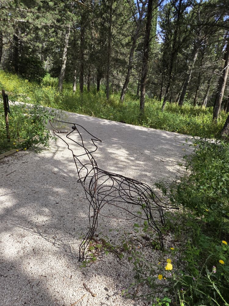So, Plan B – Castle first. We’ll try to walk down the other side of the trail shown on AllTrails. Good call, as we walk through a very pretty little section of the forest which has an art installations representing fairy tales – like the “flea cave” that represents when Pinocchio ended up in the belly of the whale to save Gepetto and the “Fauna Clearing” that has iron statures of different woodland animals. The last installation is one that represents planets orbiting the earth, in reference to the Emperor Frederick II, who built Castel del Monte, and his interest in astrology and astronomy. Sweet little walk.